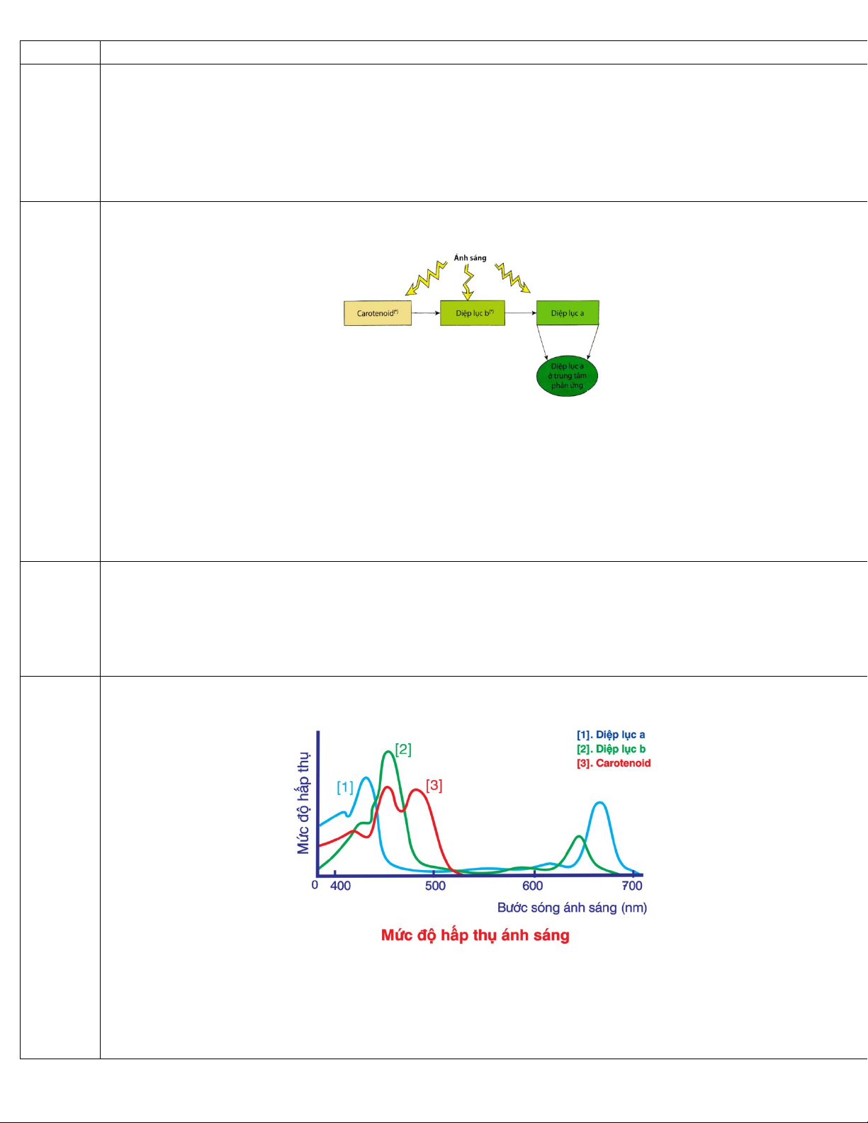 IV. Carotenoid Tham gia quá trình quang hợp bằng cách tiếp nhận năng lượng ánh sáng
