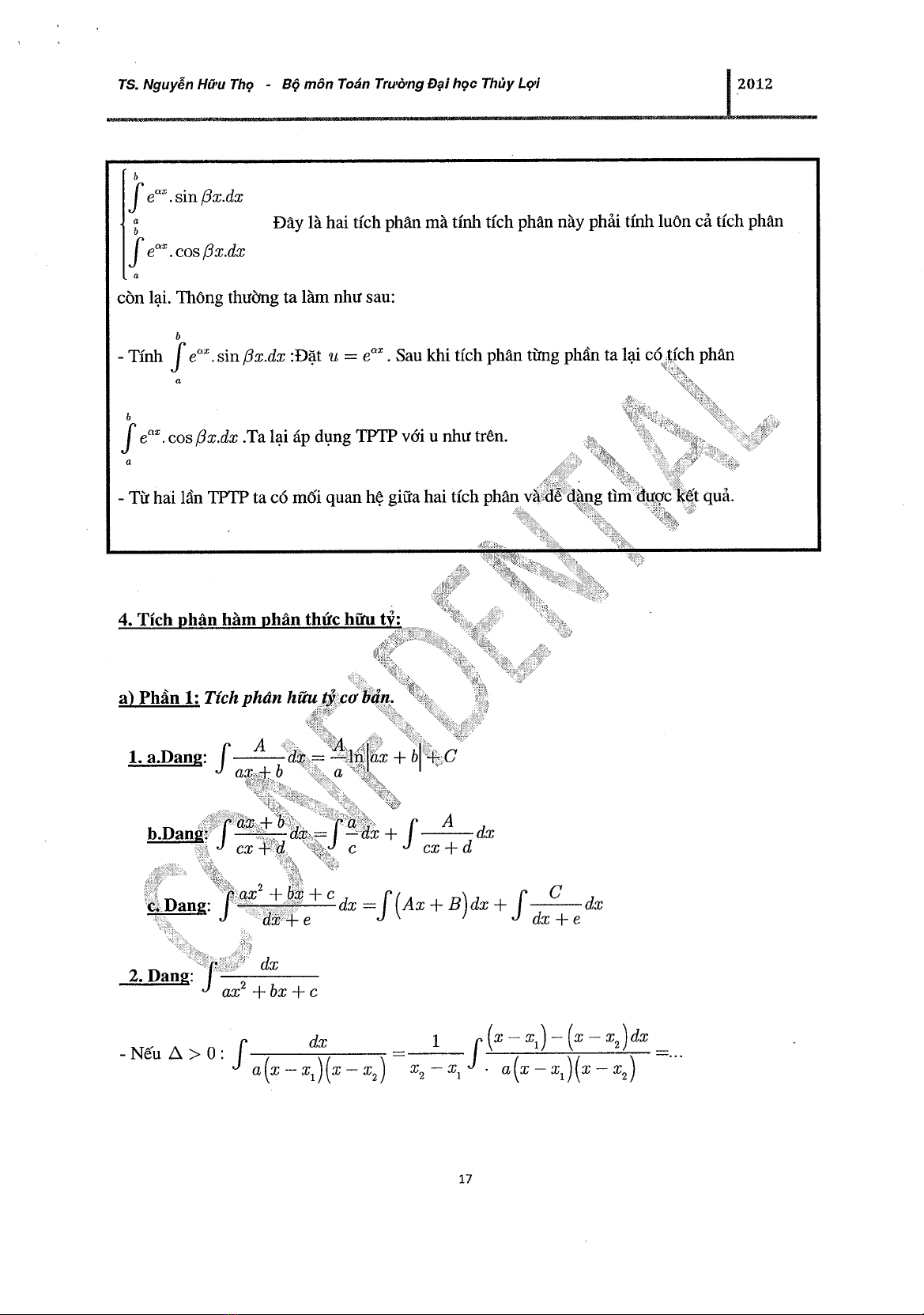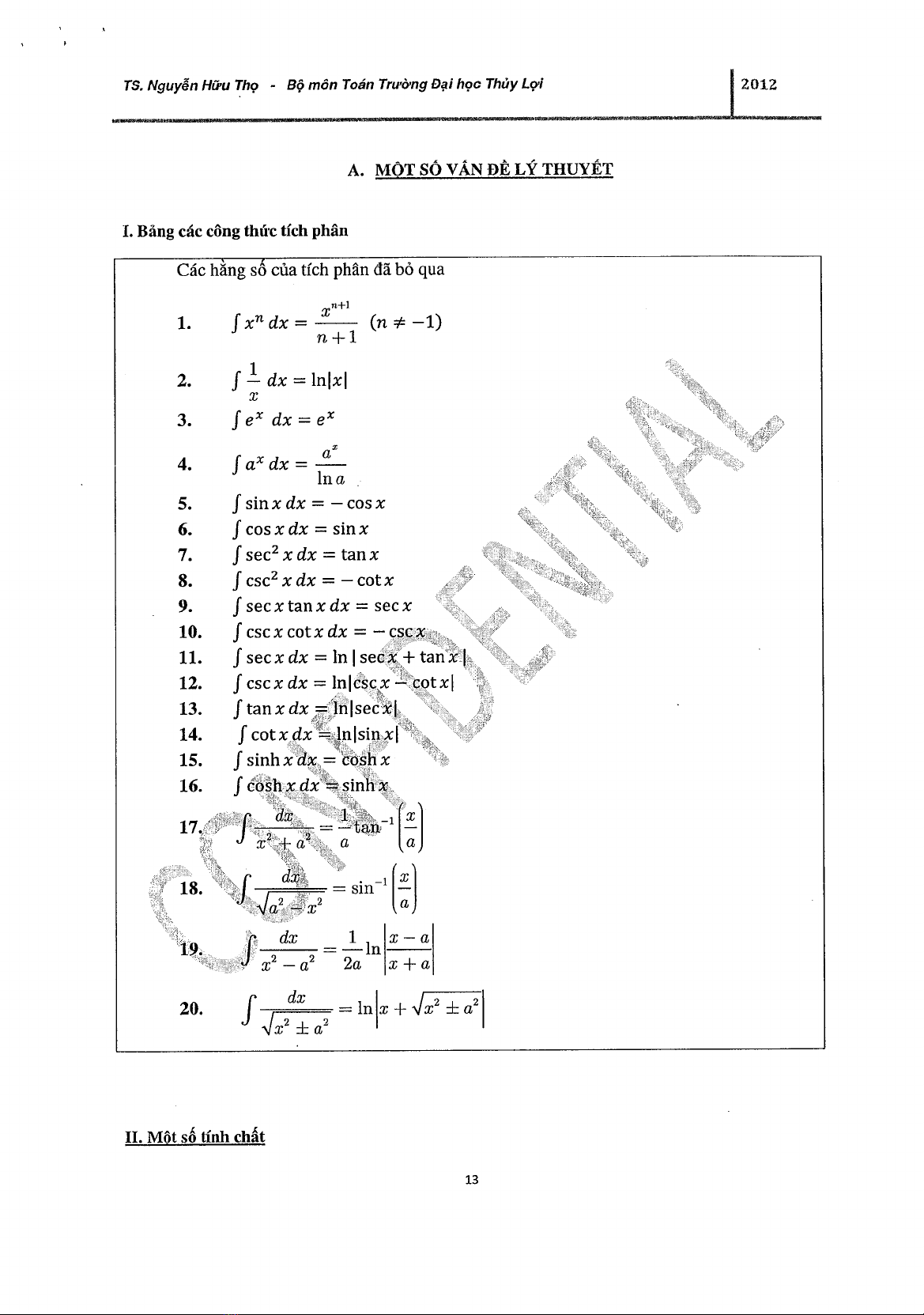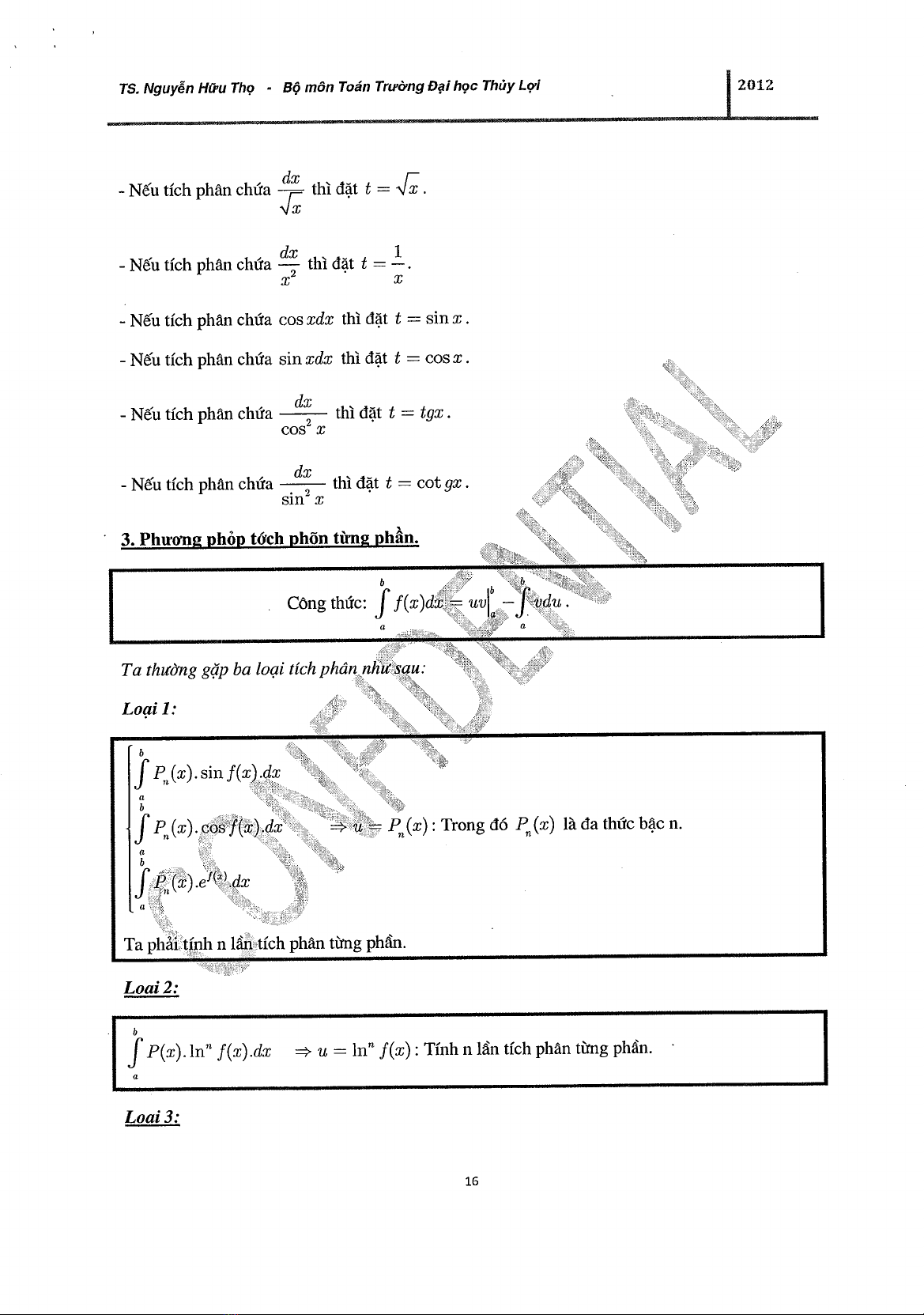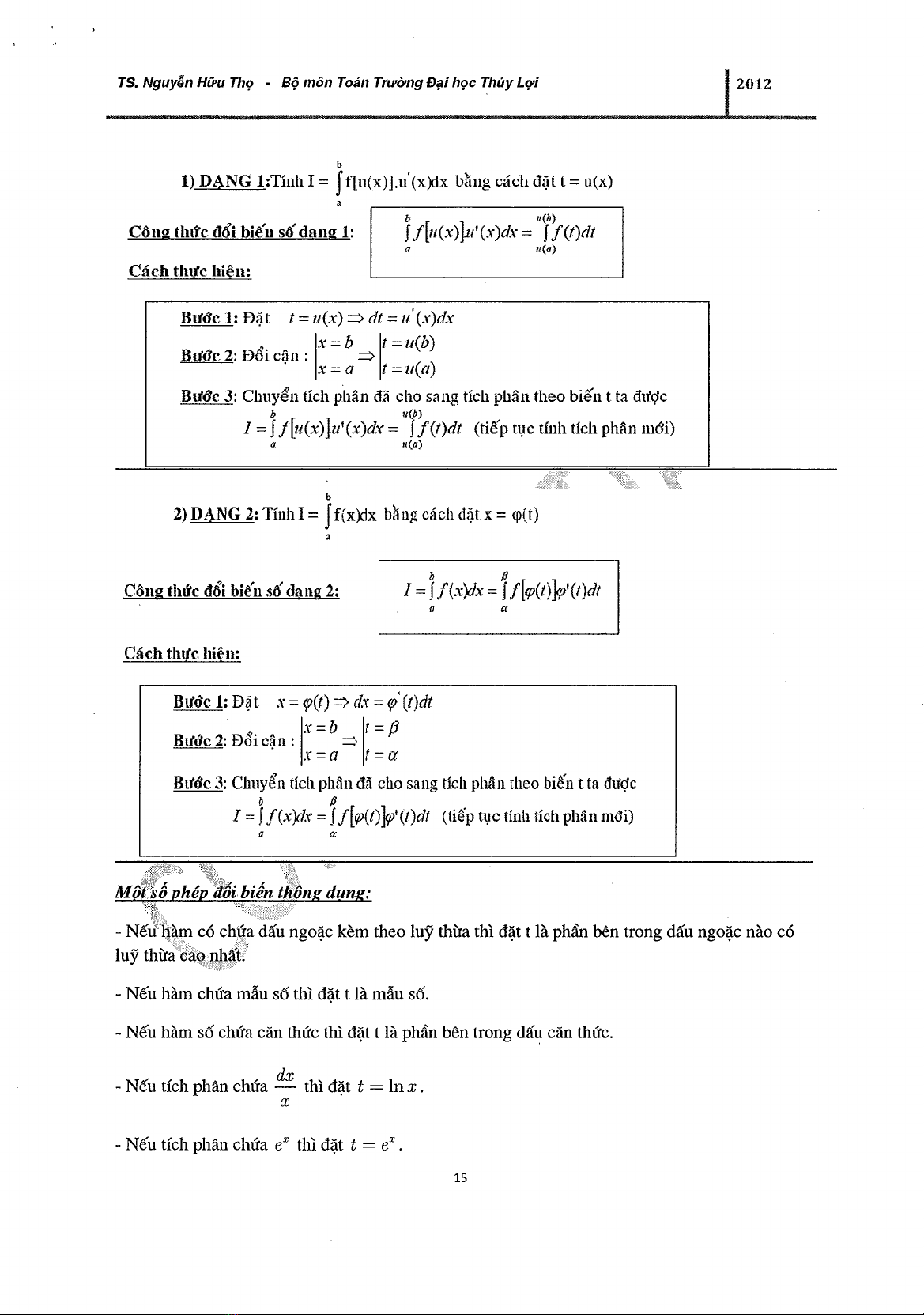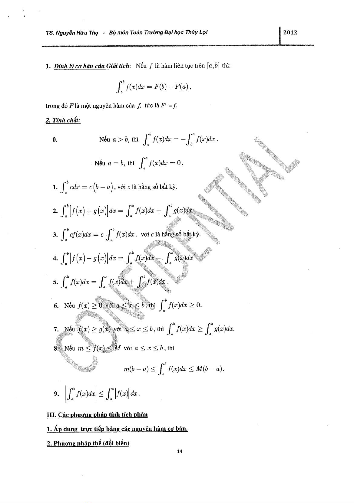 Đề cương ôn thi Cao học 2012 Tích phân - TS. Nguyễn Hữu Thọ