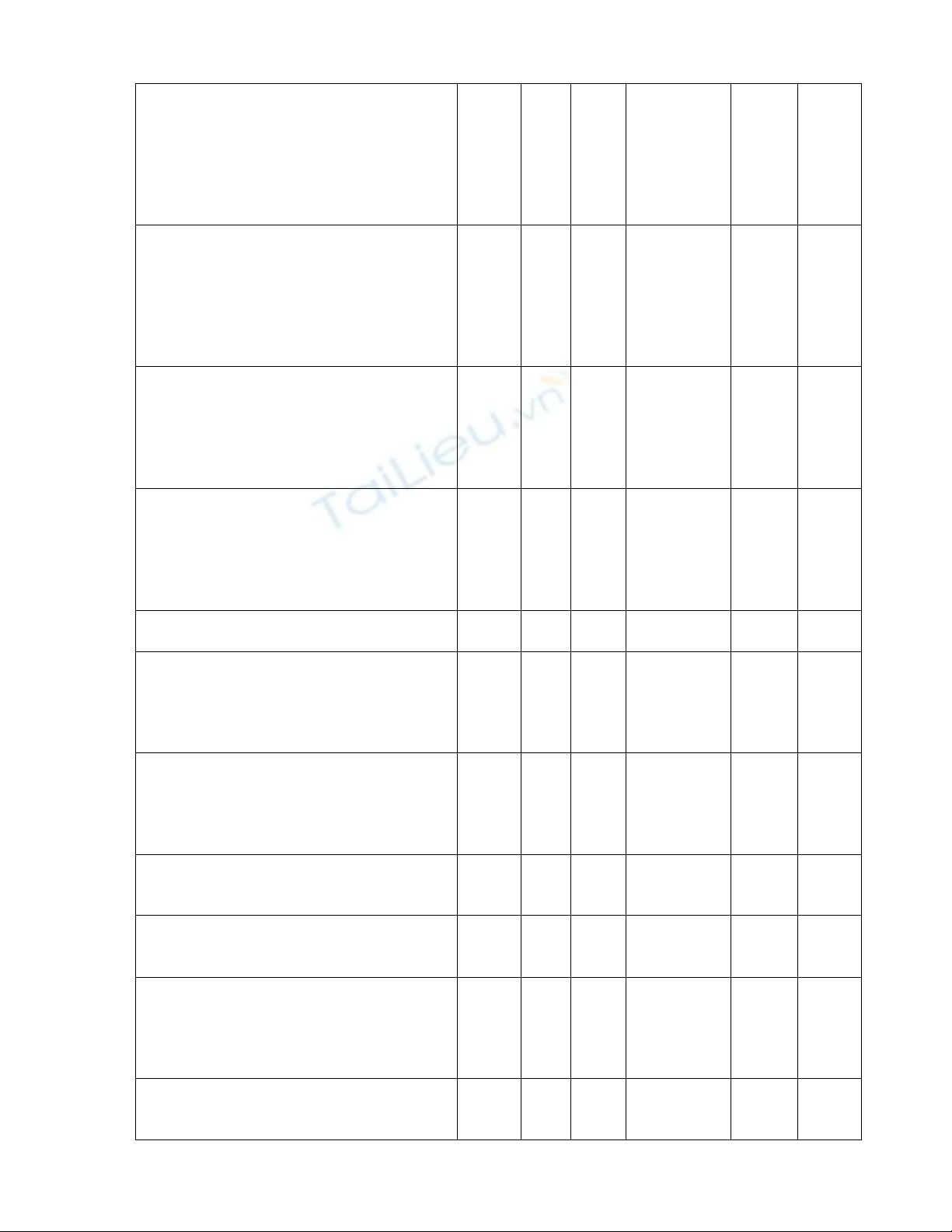 Tên môn học: .................................................... Mã môn học: ........................... Số tín chỉ: .........