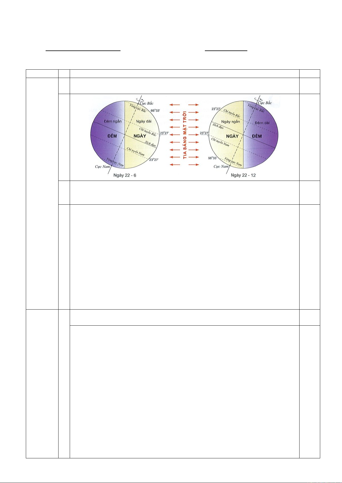 a. Vẽ hình Hiện tượng ngày và đêm vào các ngày 22/6 và 22/12 (theo dương lịch ở bán cầu Bắc)