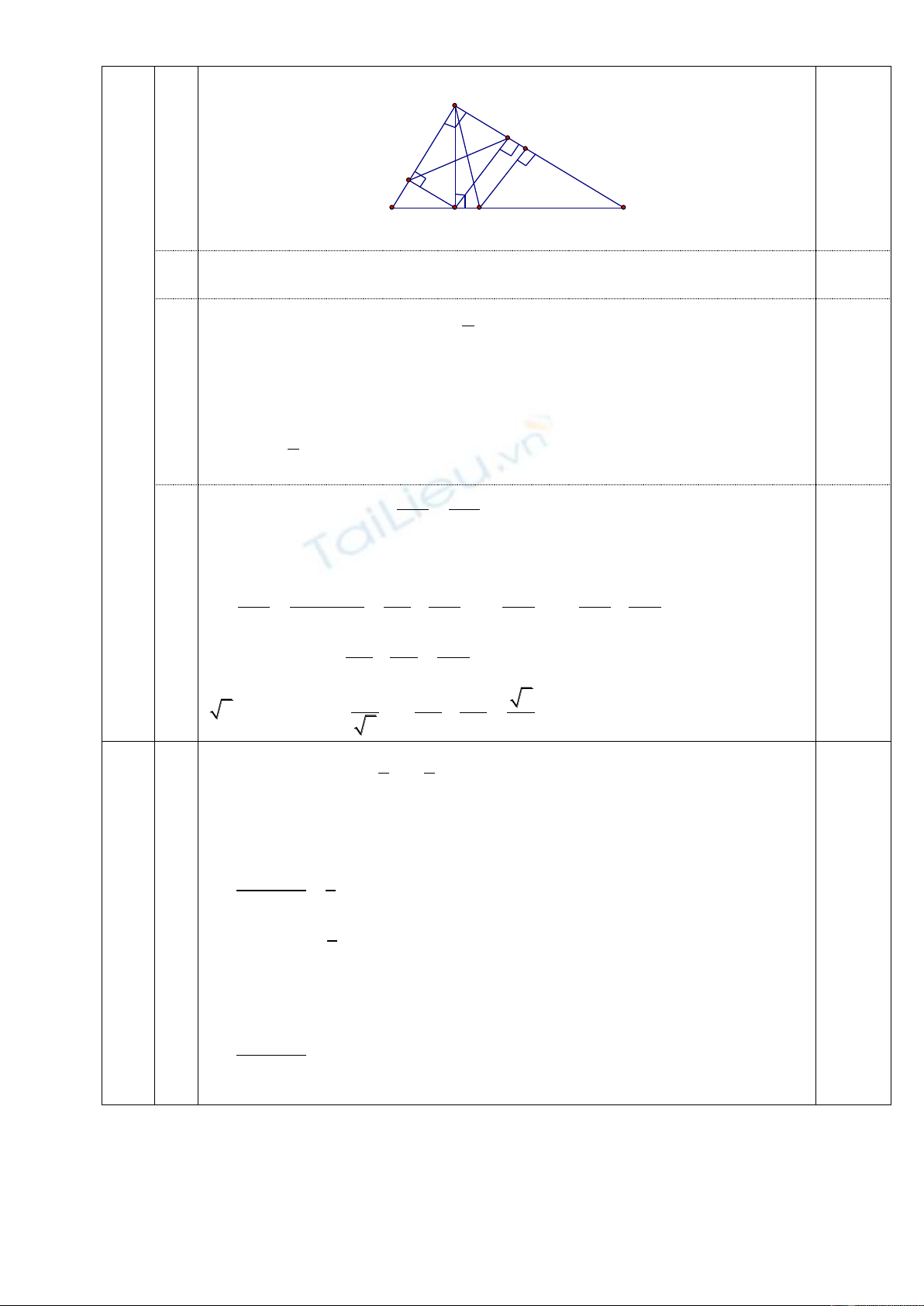 Câu 8. Cho ABC vuông tại A, đường cao AH; HB = 3,6cm; HC = 6,4cm.