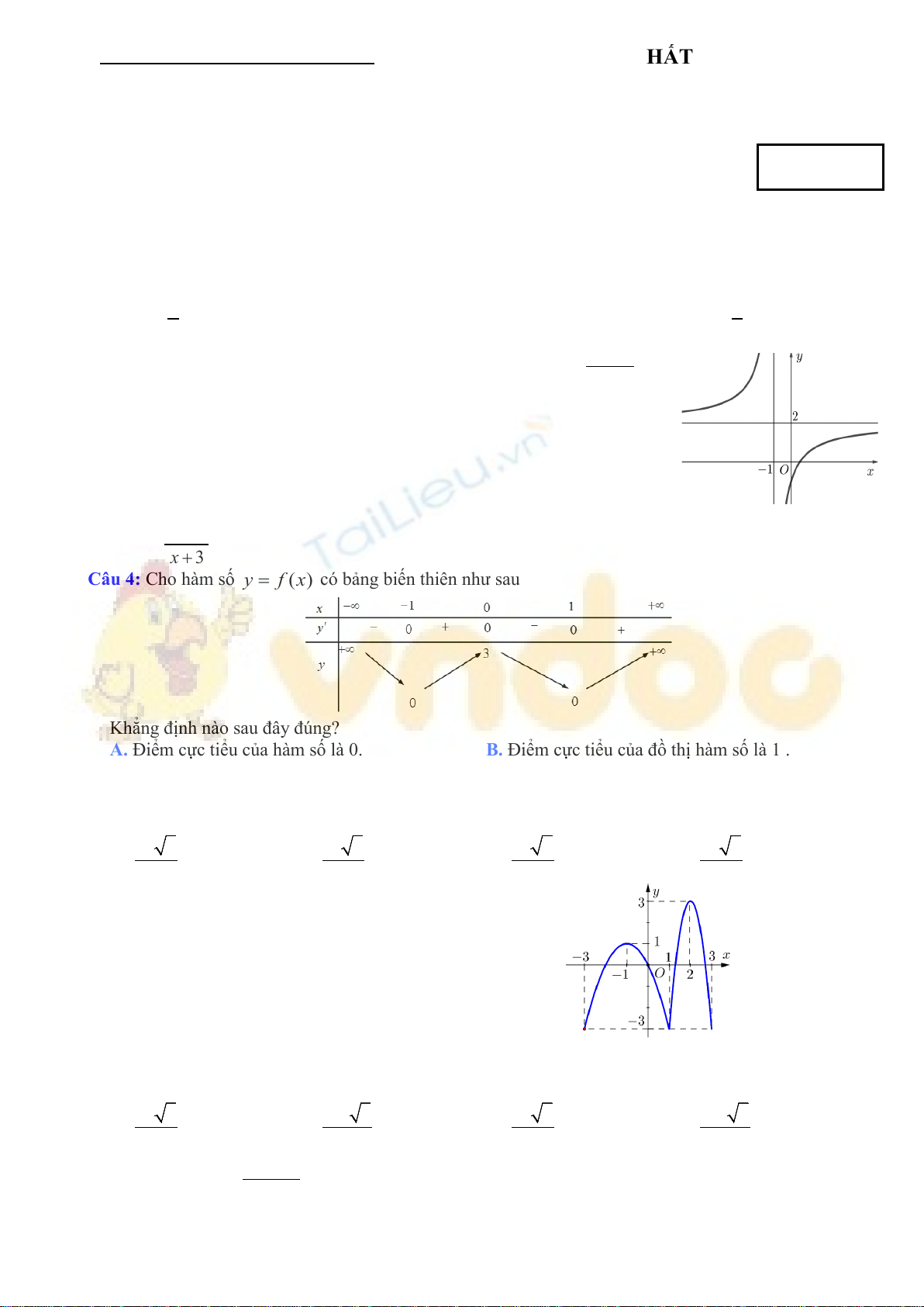 C. Điểm cực tiểu của hàm số là – 1 . D. Điểm cực đại của hàm số là 3.