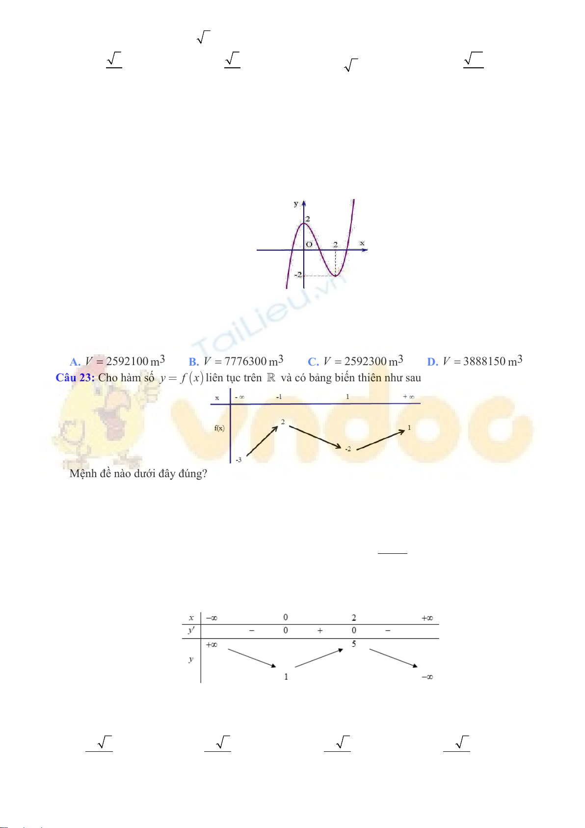 Câu 2: Đường cong ở hình vẽ dưới đây là đồ thị của hàm số