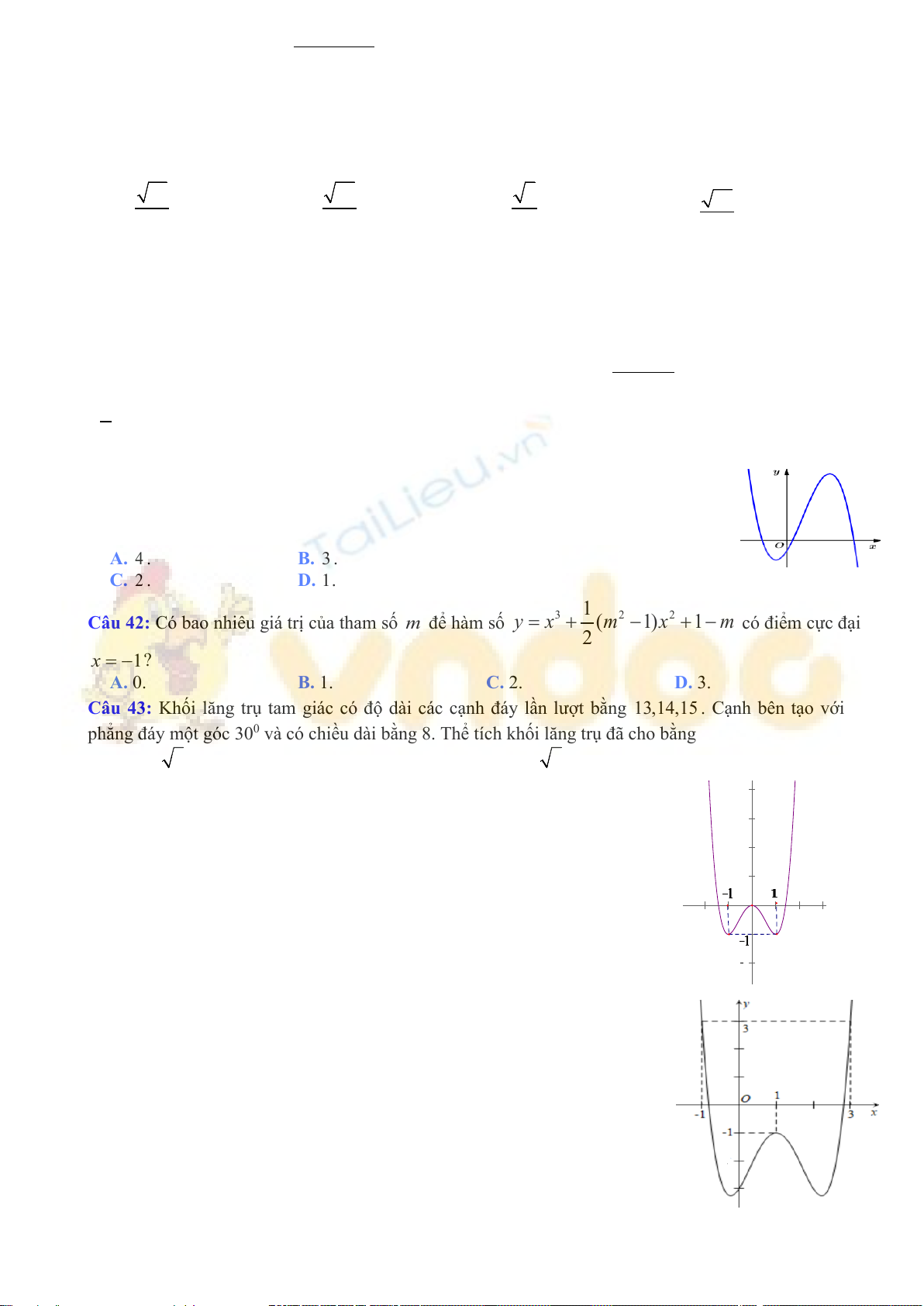 Câu 43: Khối lăng trụ tam giác có độ dài các cạnh đáy lần lượt bằng
