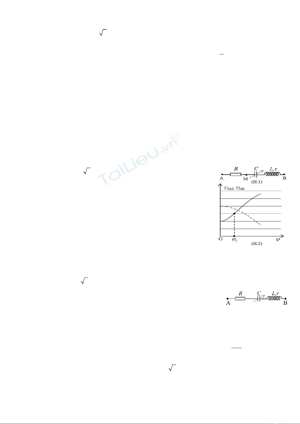 AB mắc nối tiếp như hình H.1. Tụ điện điện dung thay đổi được. Hình H.2