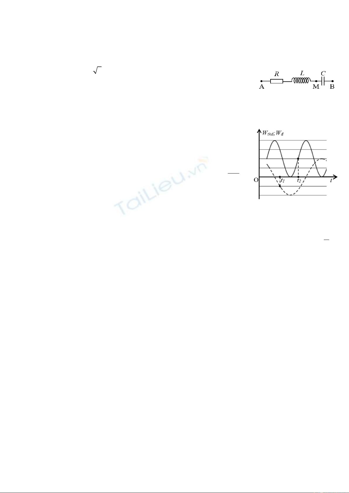 cuộn dây là U1. Khi C = C2 thì cường độ dòng điện trong mạch sớm pha hơn điện áp u