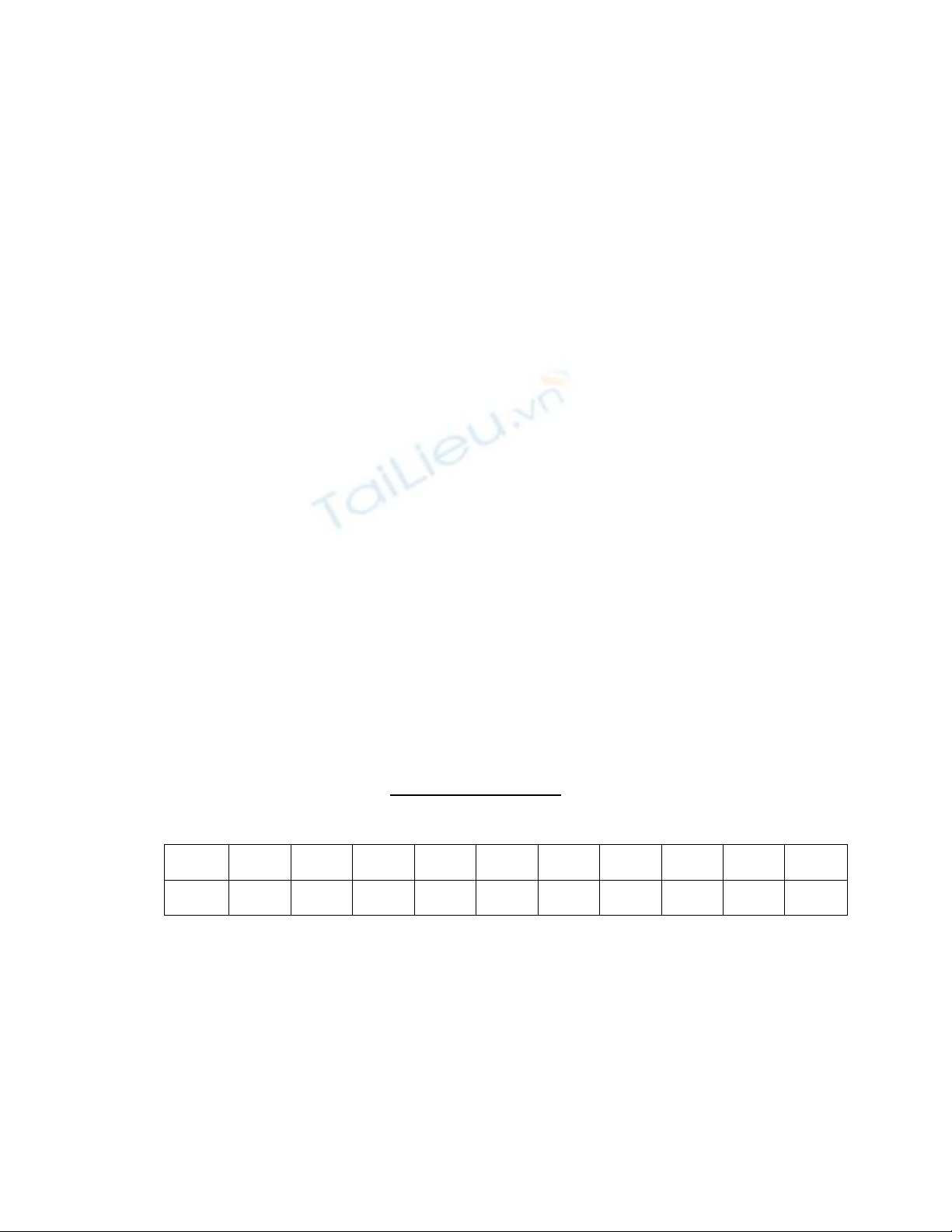 I.Trắc nghiệm (5,0đ) Lựa chọn đáp án đúng trong các câu sau: