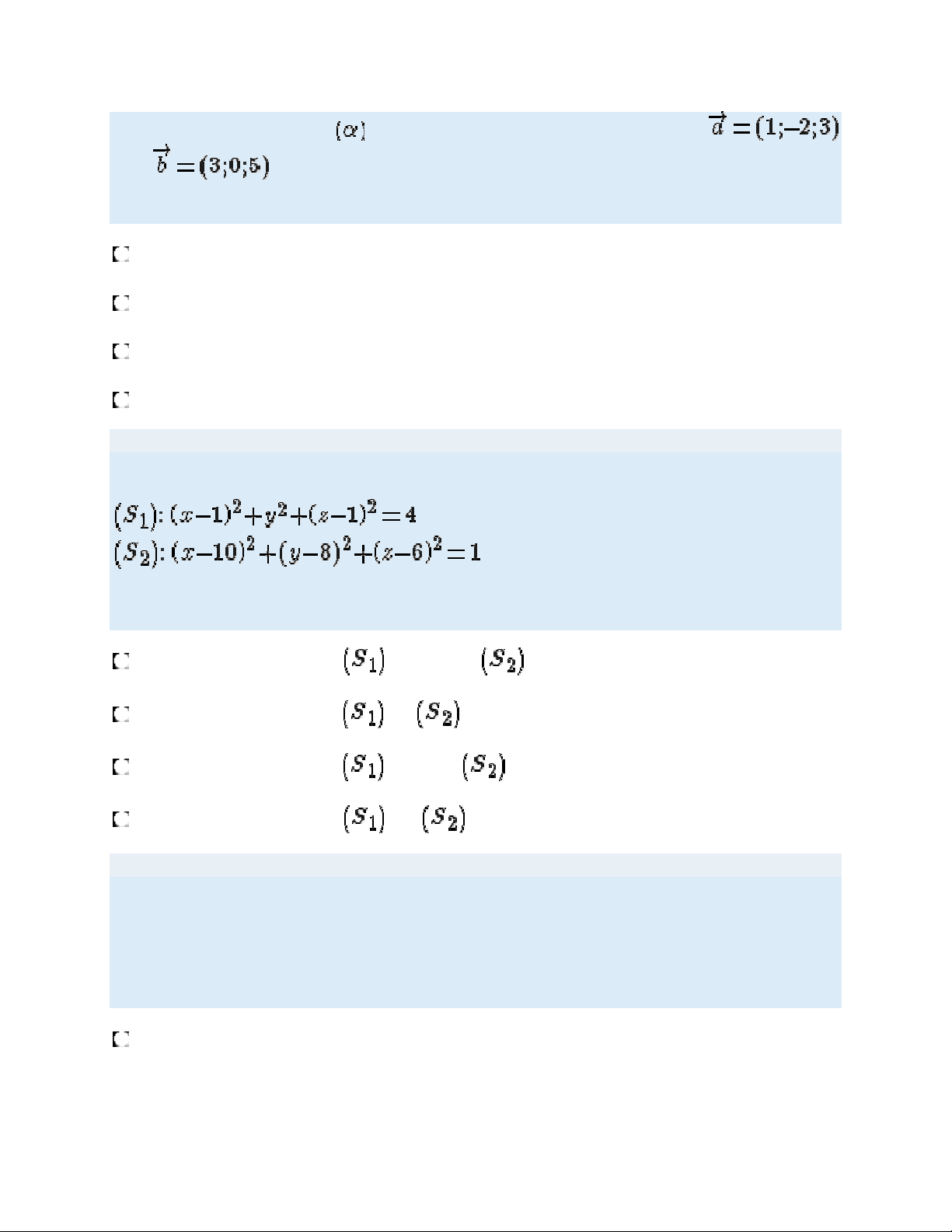 Cho 2 mặt cầu (S1): x2 + y2 + z2 = 25; (S2): (x - 1)2 + (y - 1)2 + z2 = 25 và 2 mặt phẳng