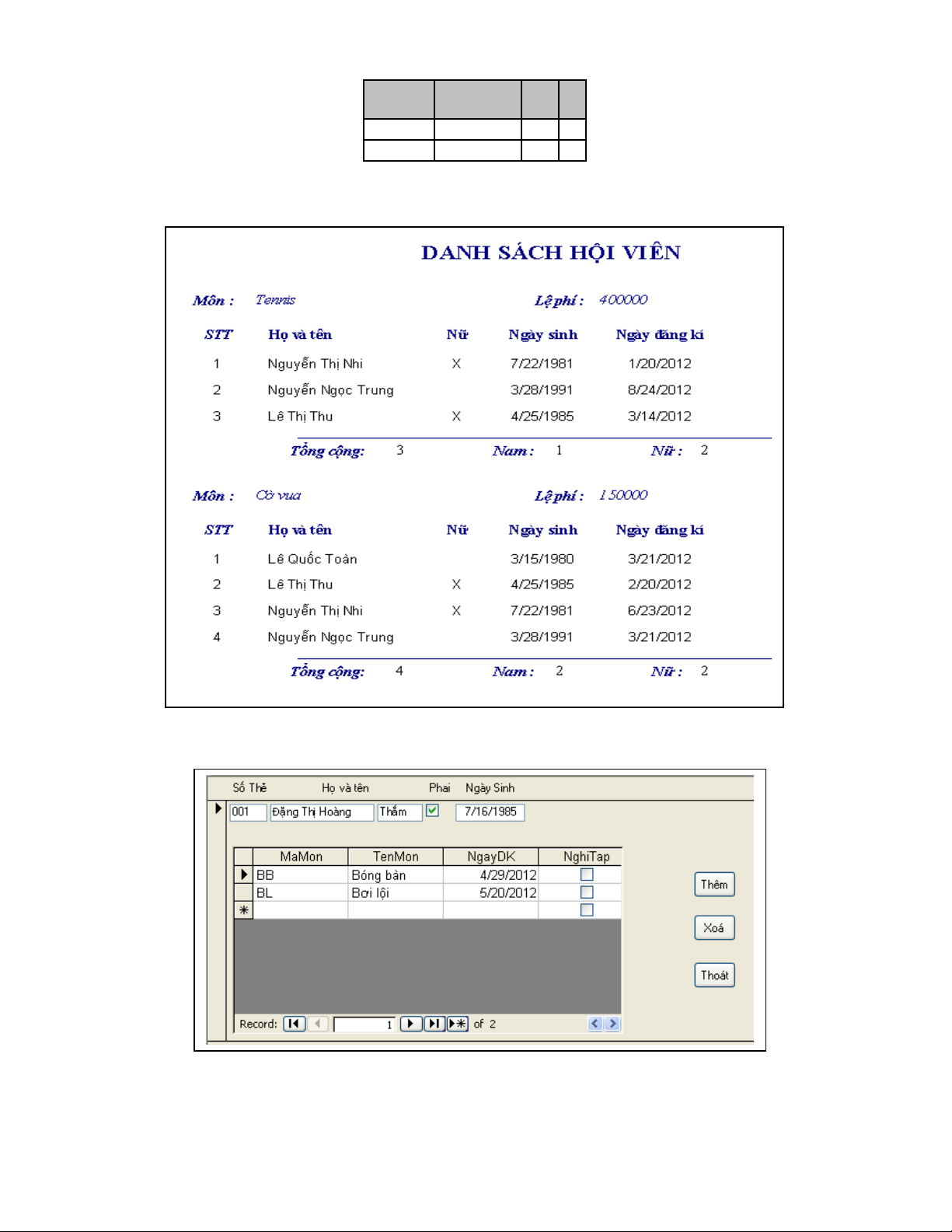 Câu 4) T o form c p nh t danh sách h i viên và môn đăng kí:ạ ậ ậ ộ