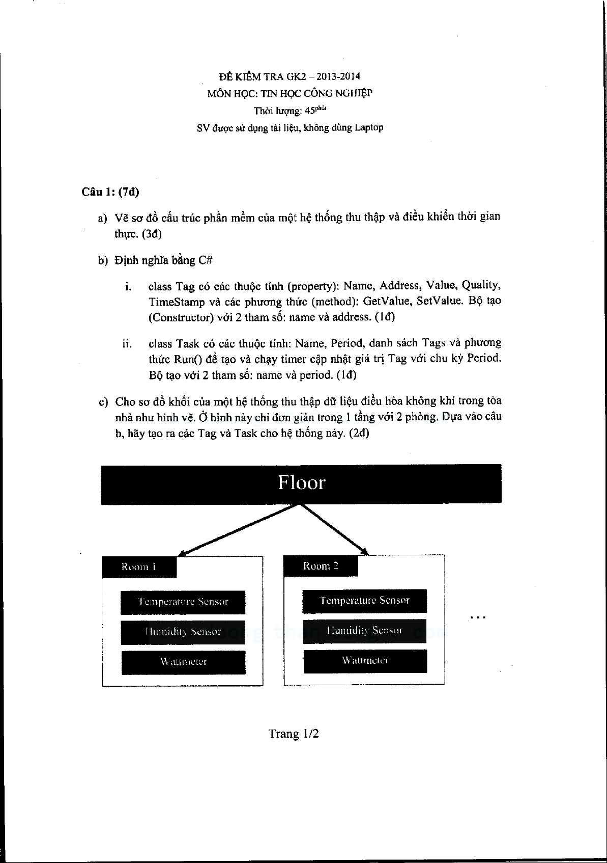 Đề kiểm tra cuối học kỳ II năm 2013 - 2014 môn Tin học công nghiệp