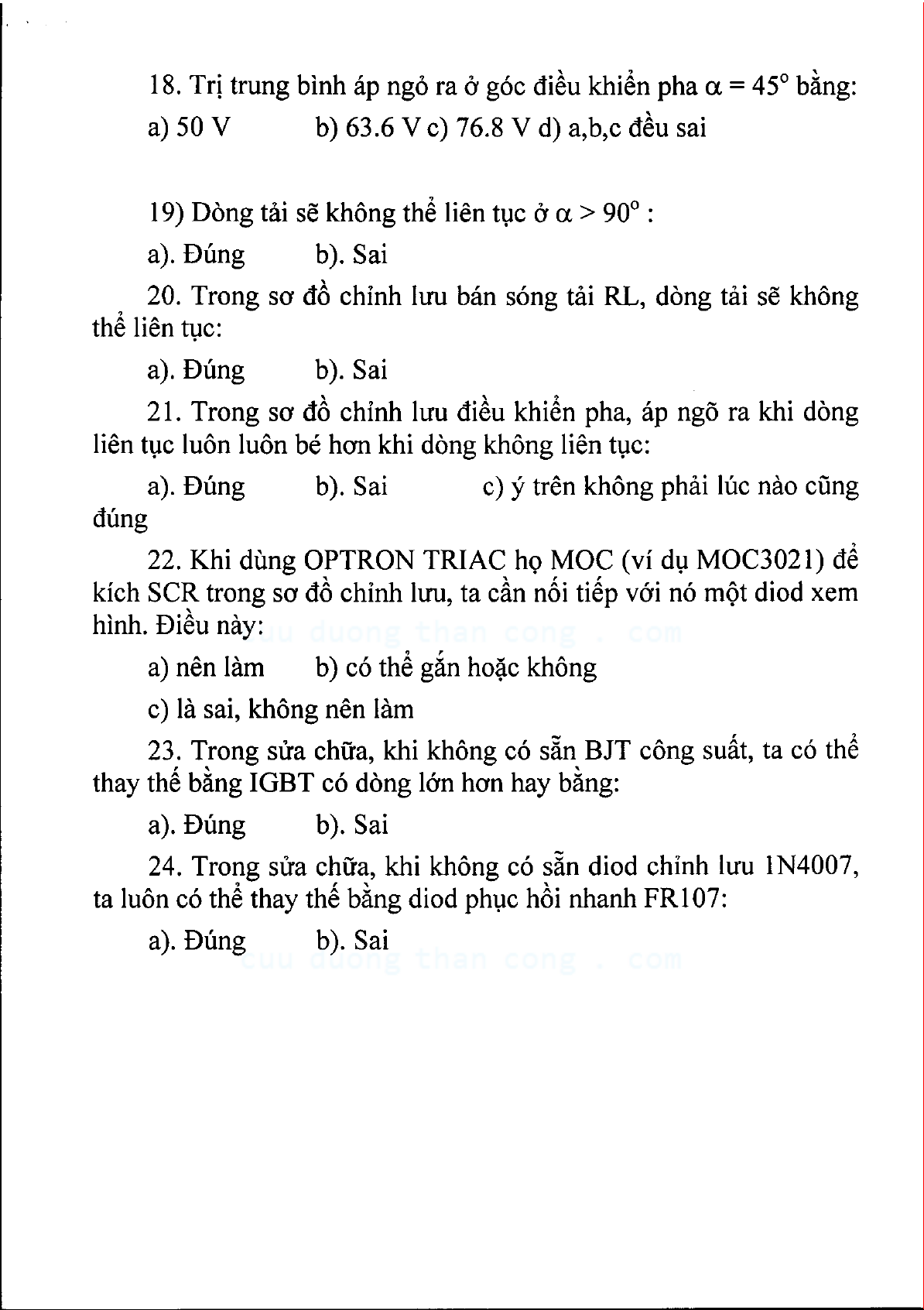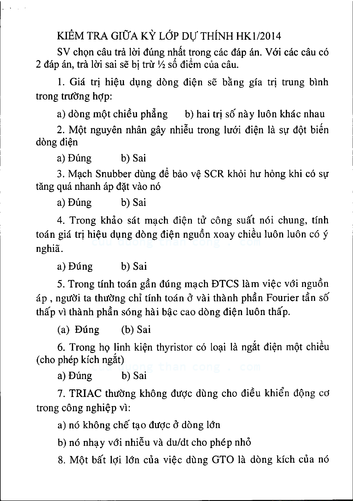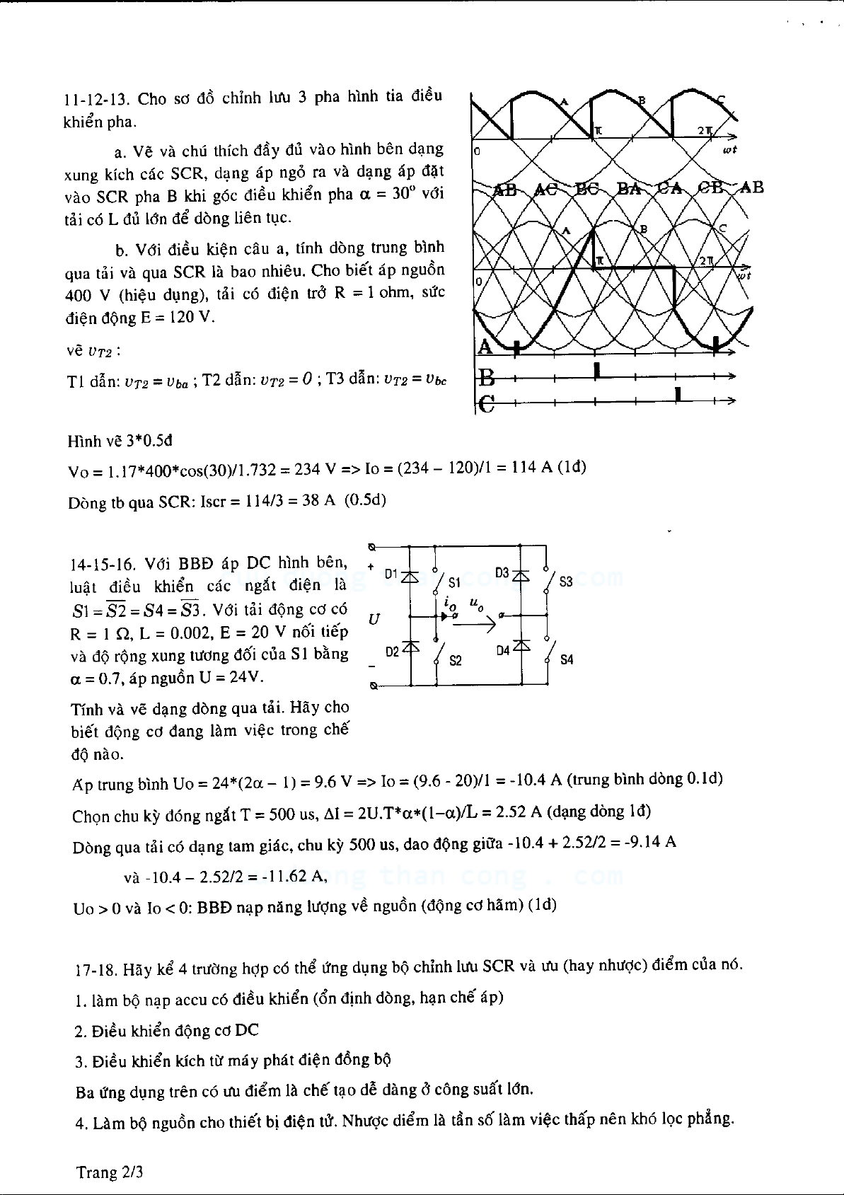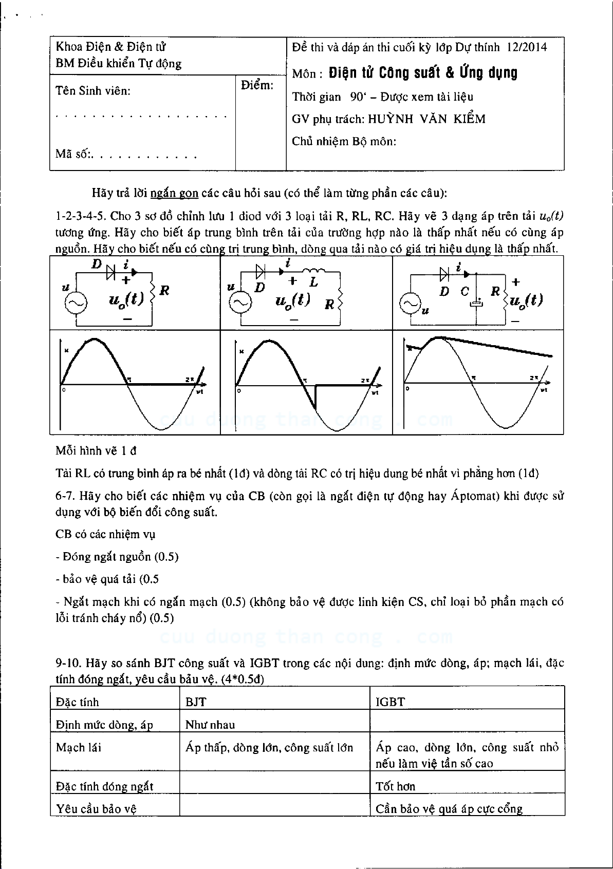 Đề kiểm tra và đáp án đề thi học kỳ I lớp dự tính năm 2014 môn Điện tử công suất và ứng dụng