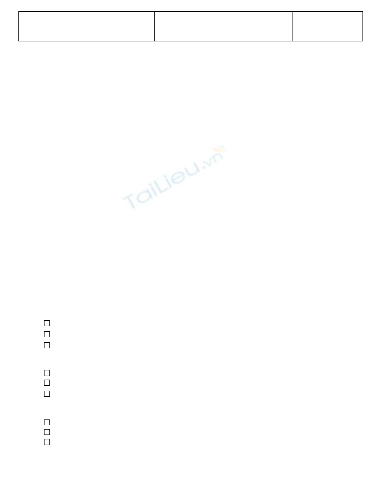 Đánh d u x vào ô tr ng tr c ý tr l i đúng cho t ng câu h i d i đâyấ ố ướ ả ờ ừ ỏ ướ :