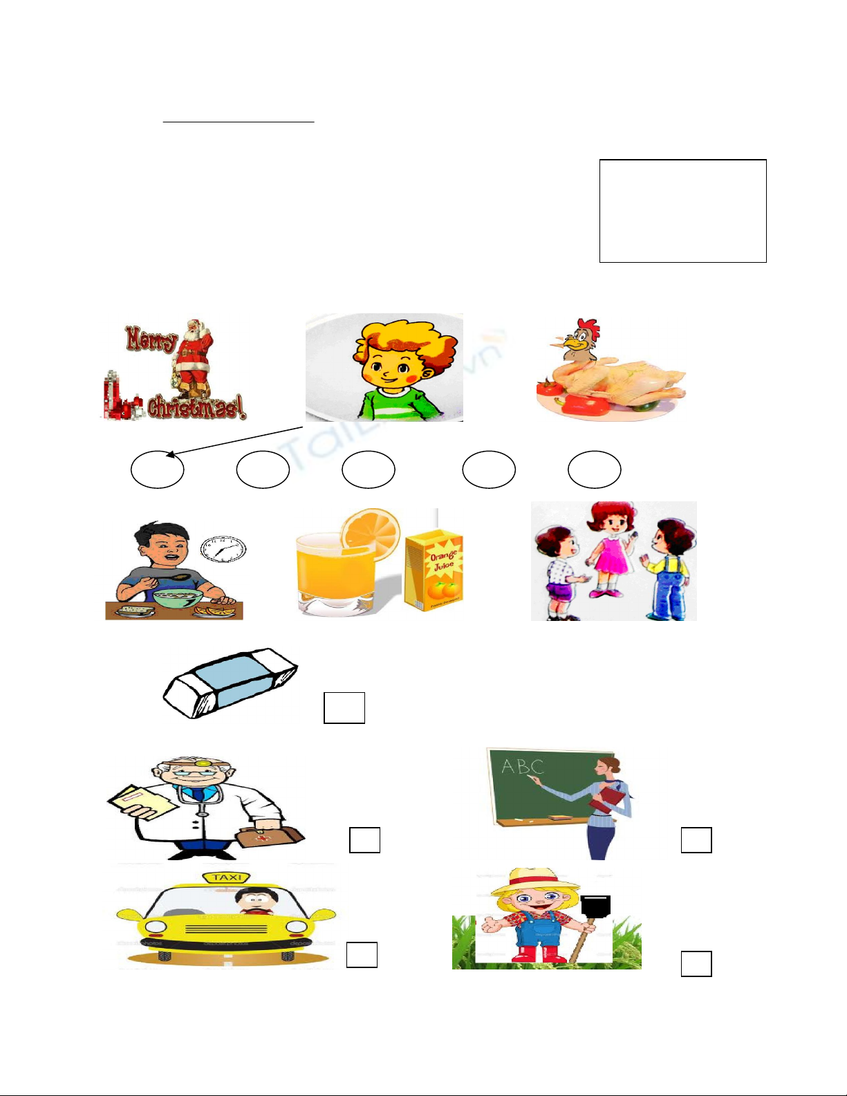 Question 2: Listen and number. ( Nghe rồi điền số thứ tự .Câu 0 là câu ví dụ) (1pt)