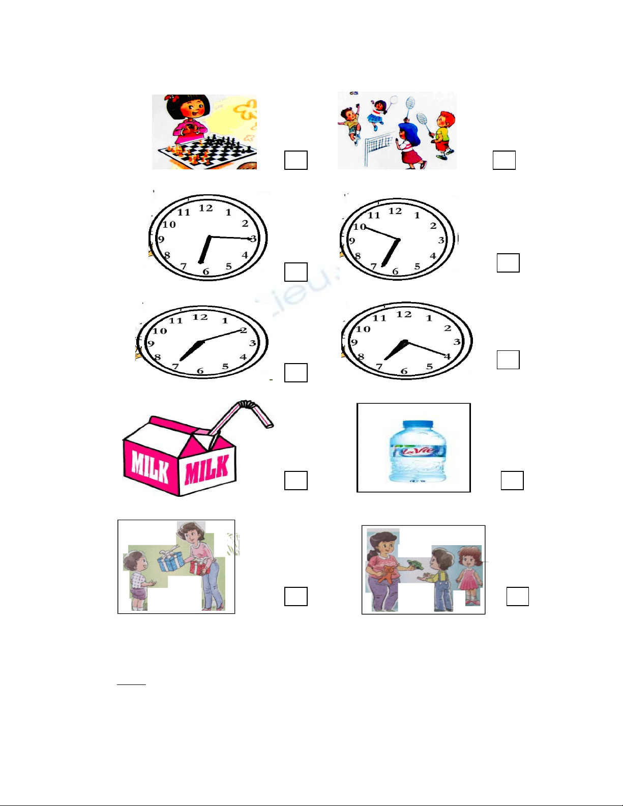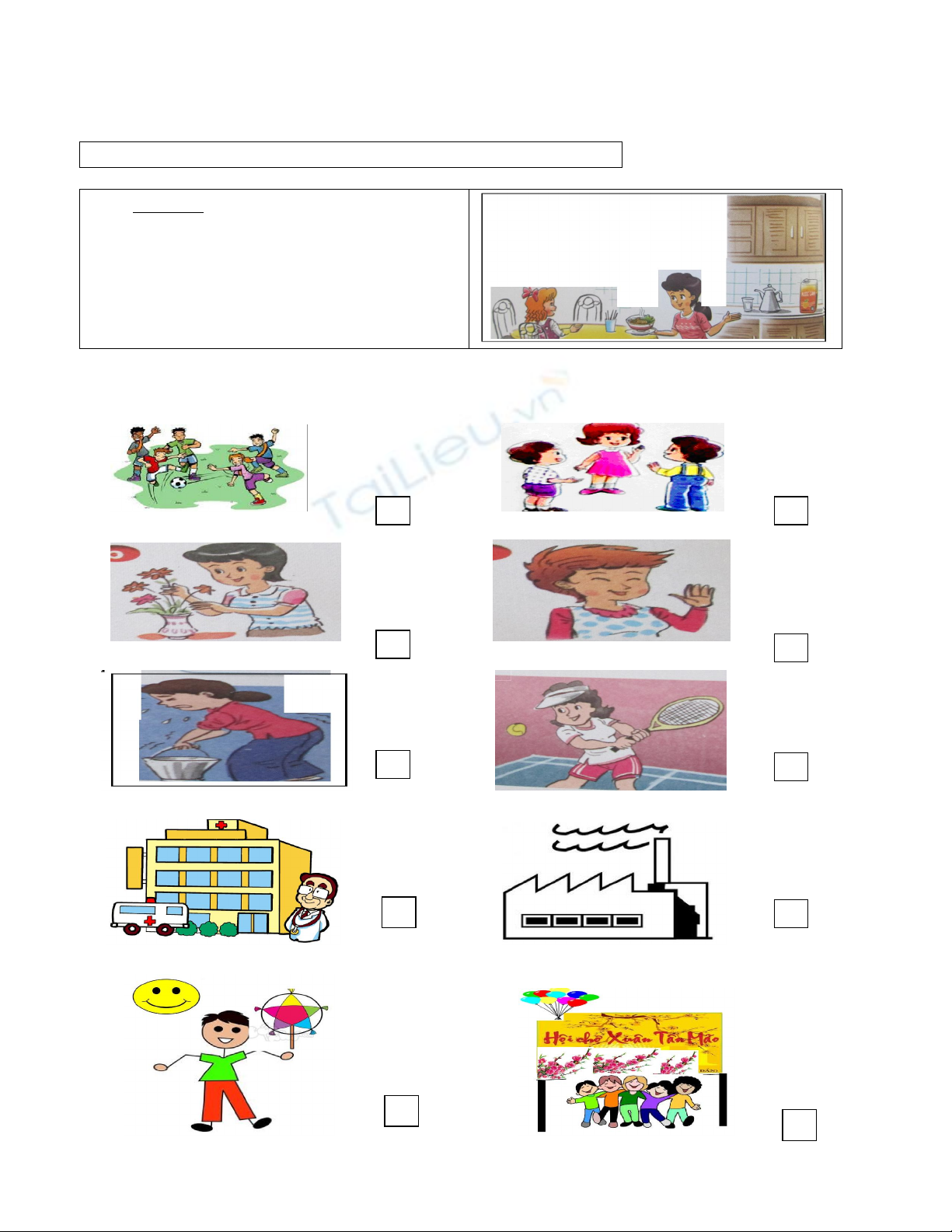 Question 6: Read and tick. (Quan sát tranh và đọc. Đánh dấu vào bức tranh đúng) ,