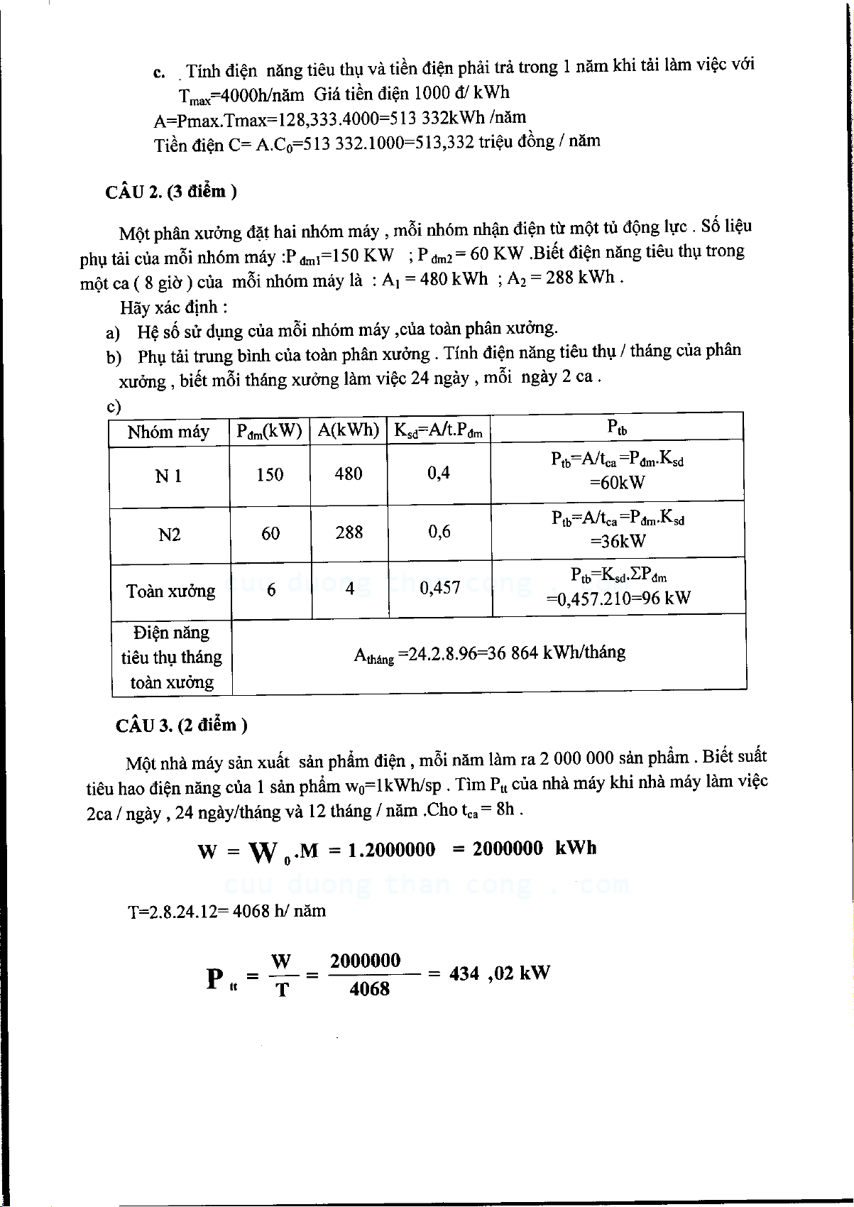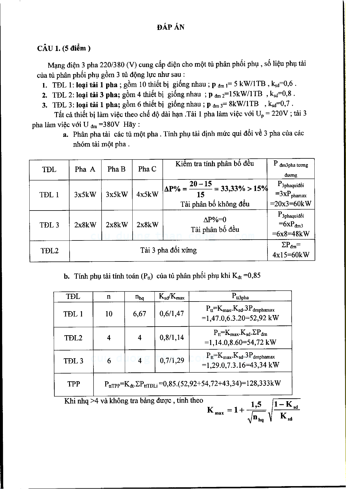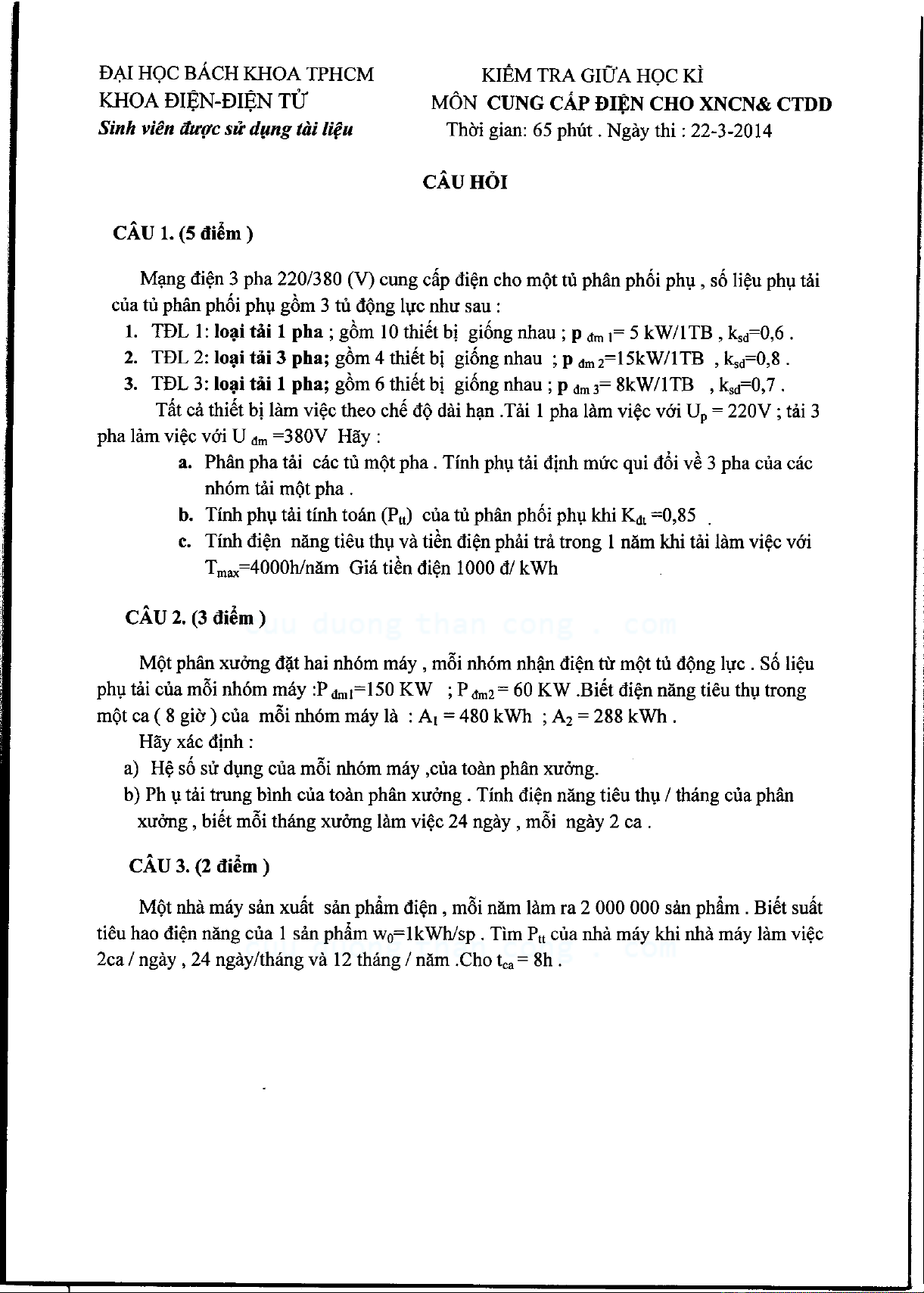Đề Kiểm tra giữa học kỳ môn Cung cấp điện cho xí nghiệp công nghiệp và công trình dân dụng