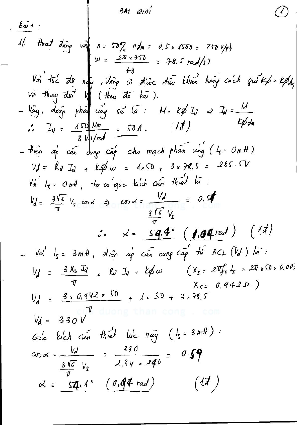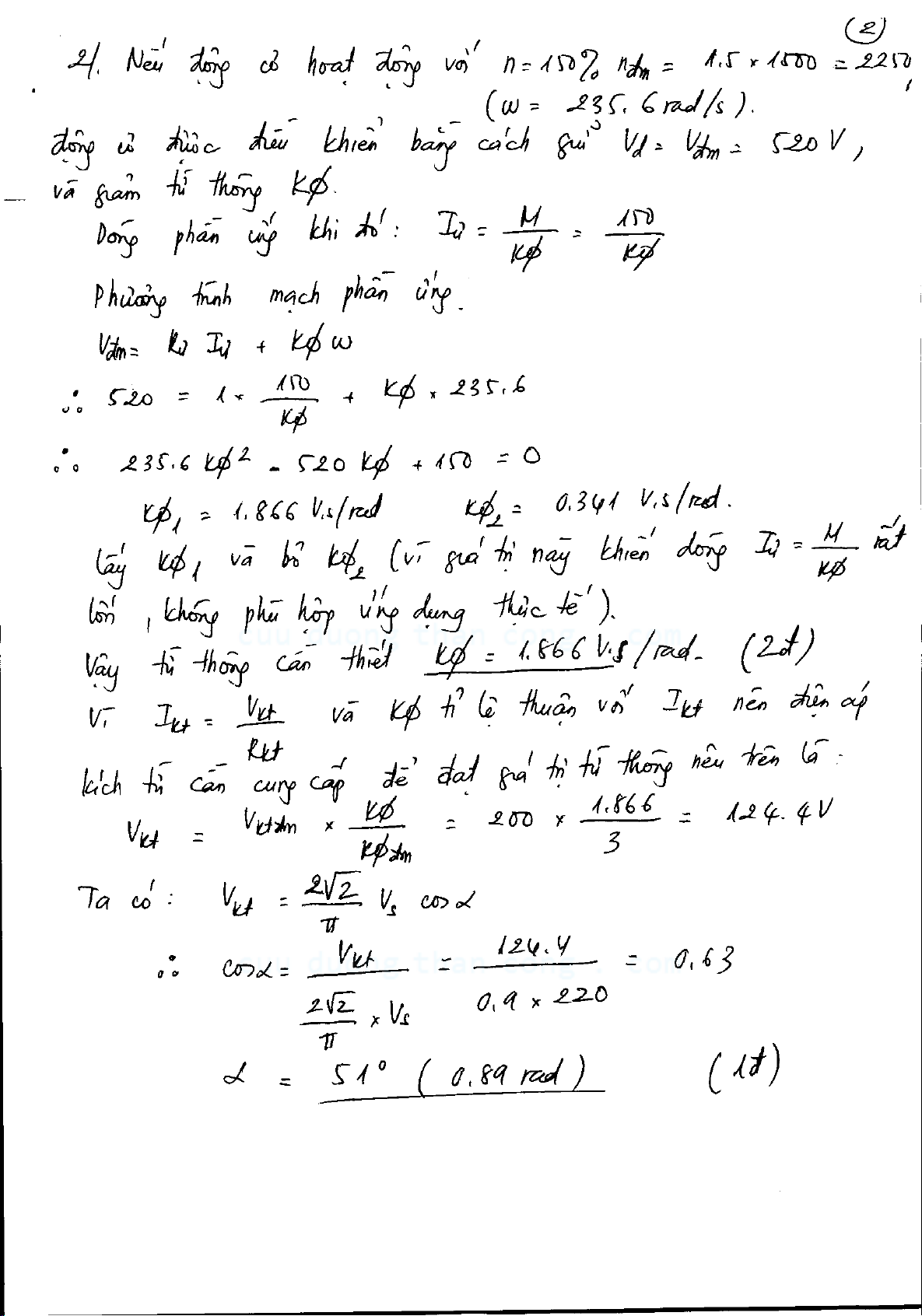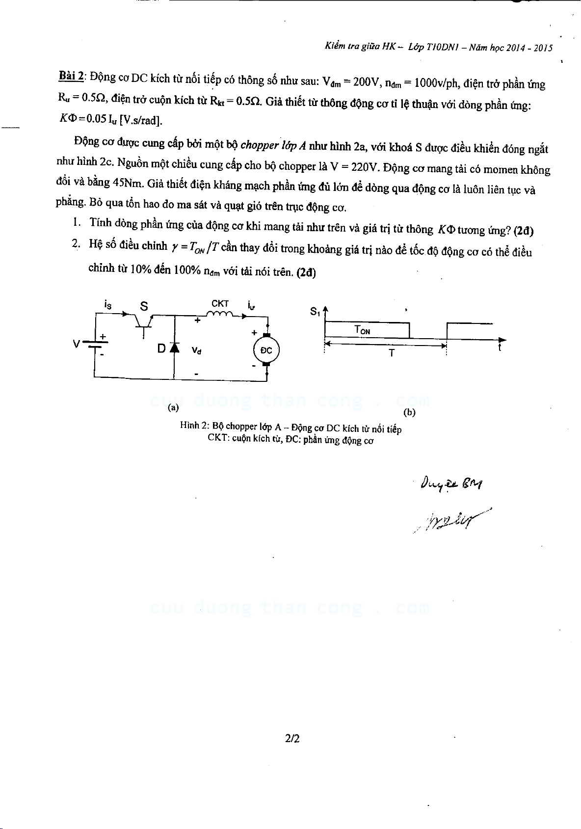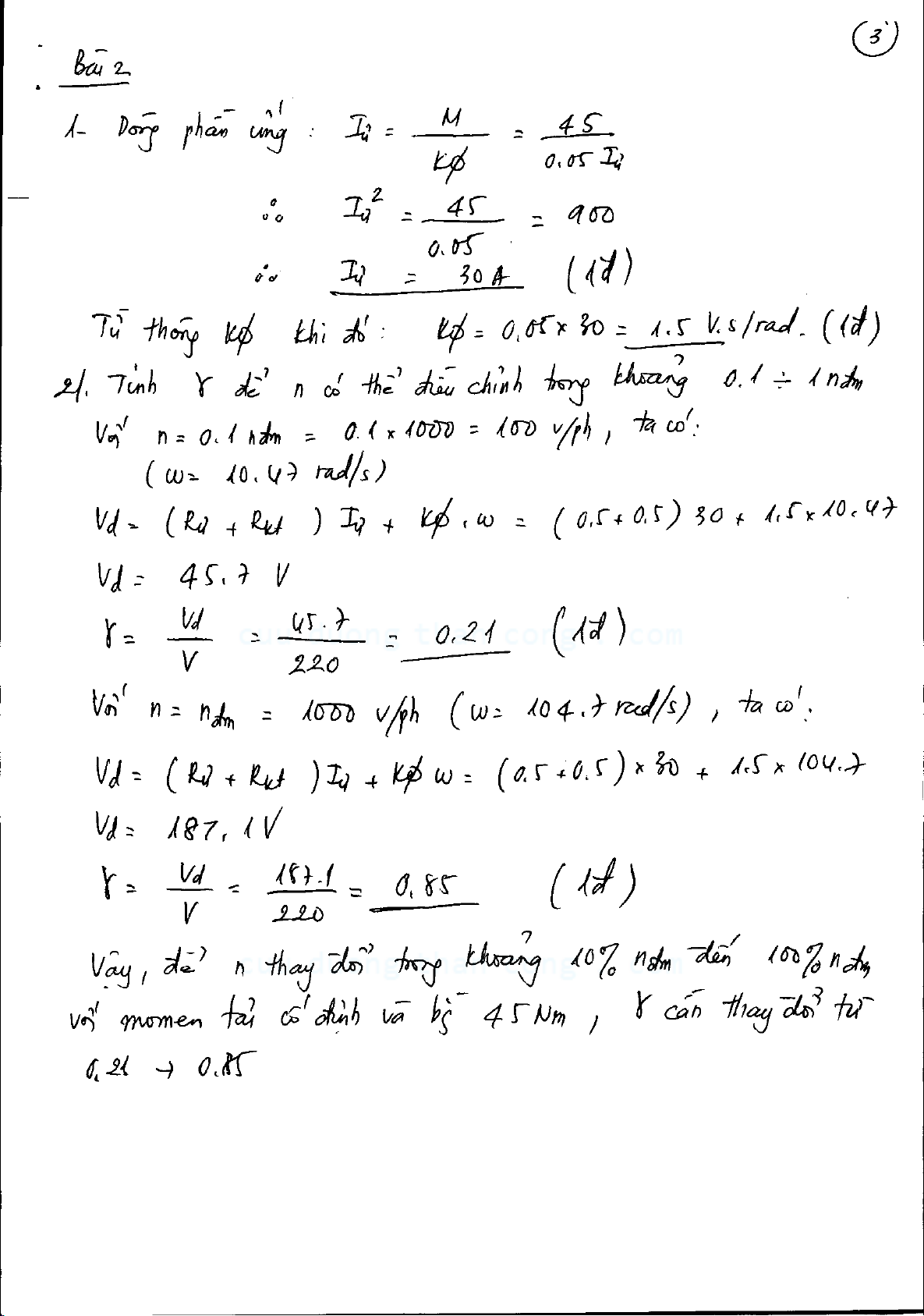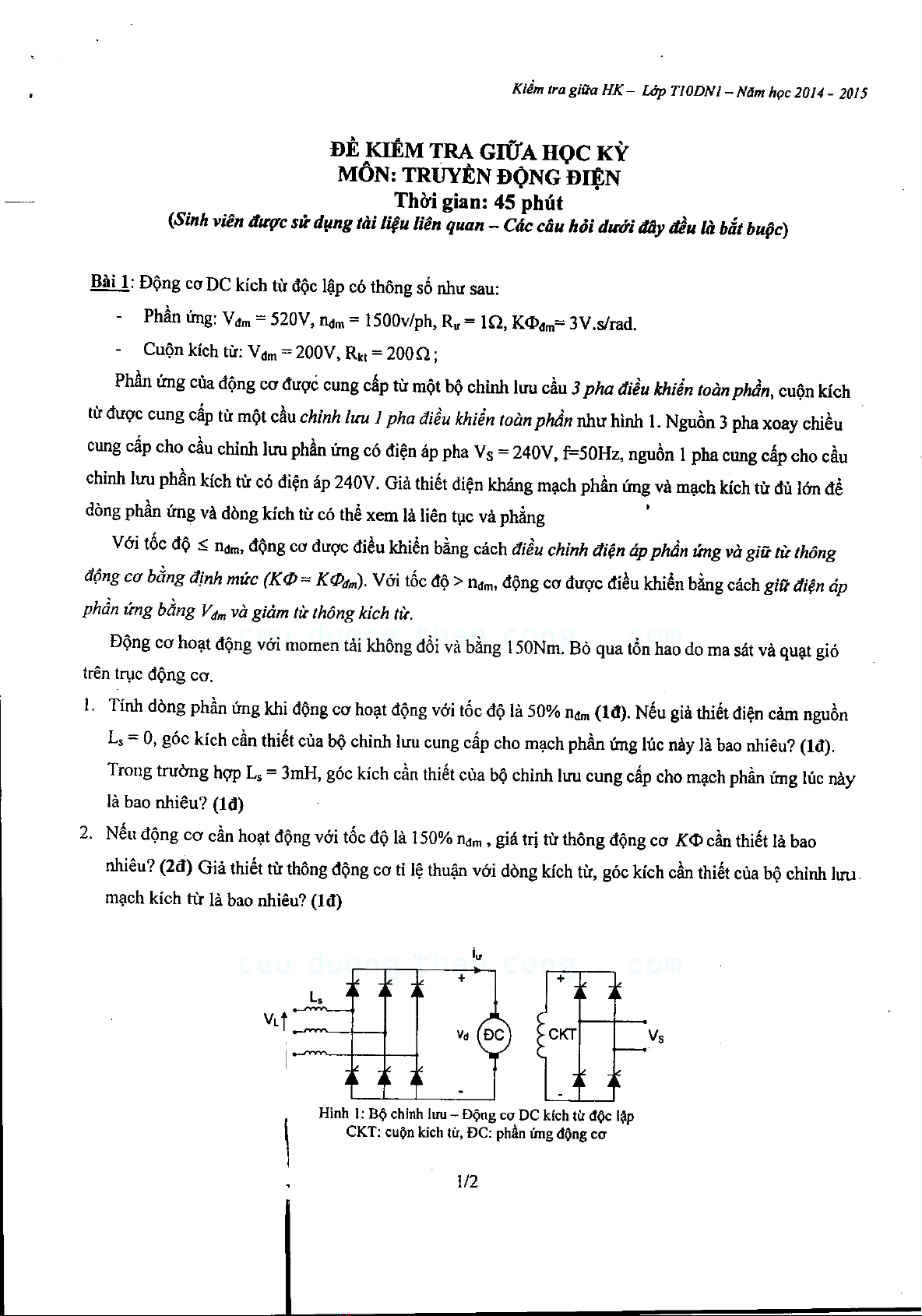 Đề kiểm tra giữa học kỳ môn Truyền động điện - Lớp T10DN1