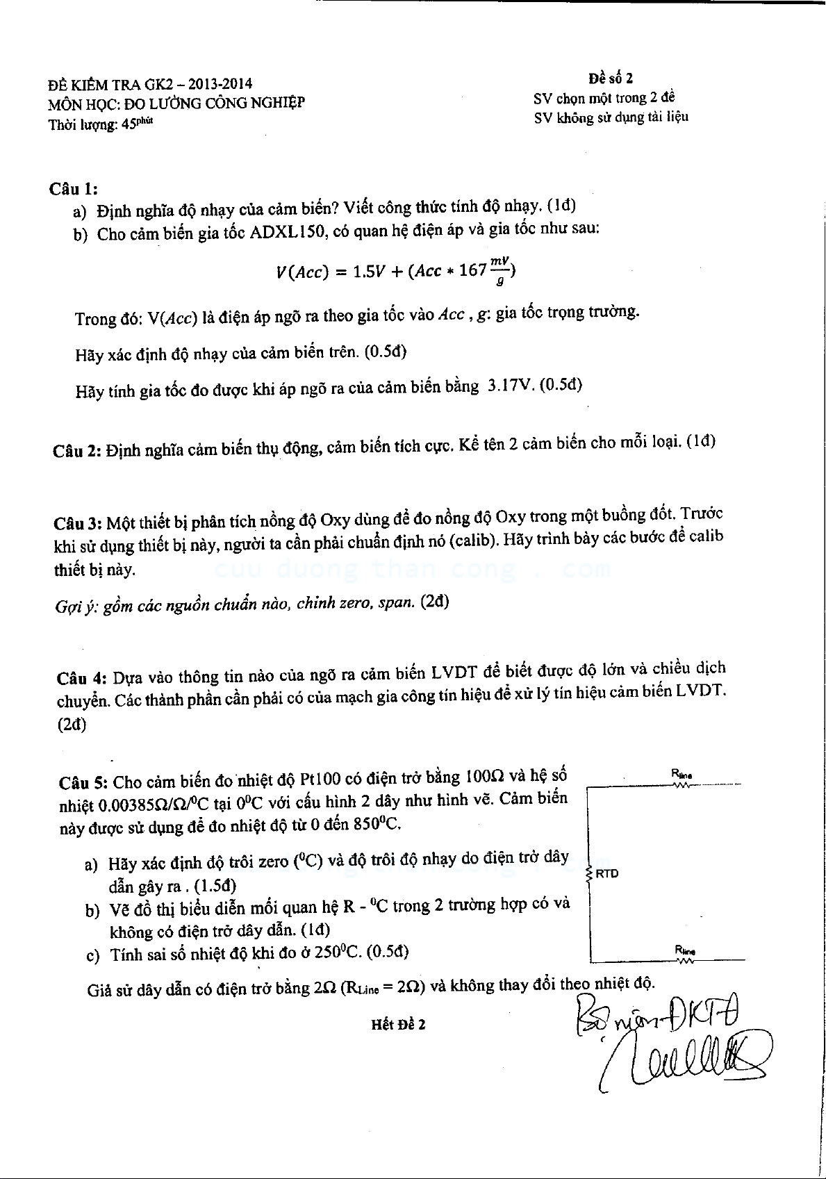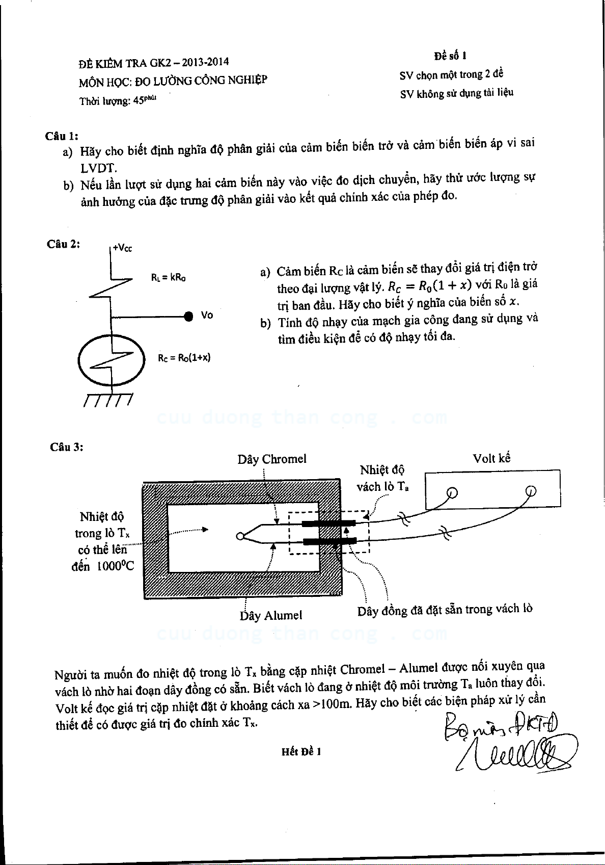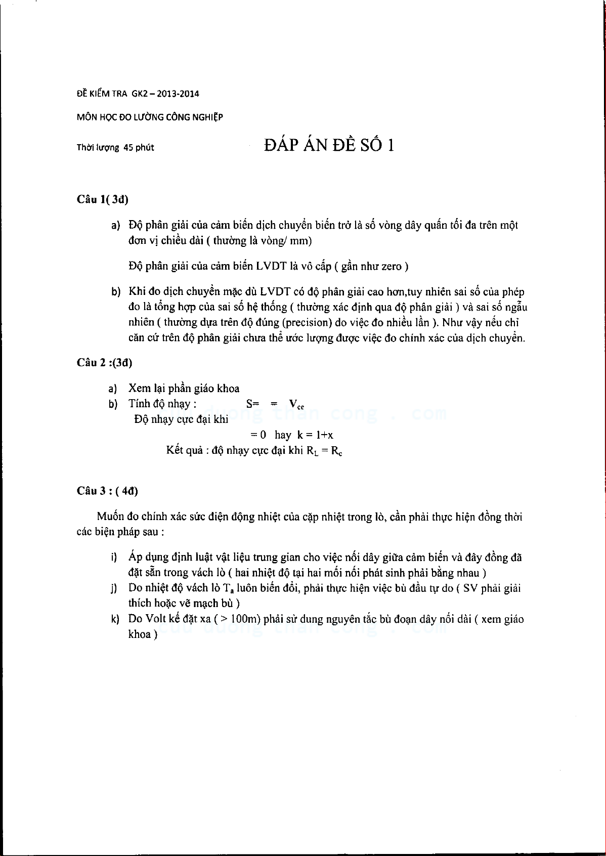 Đề kiểm tra giữa kỳ 2 năm học 2013 - 2014 môn Đo lường công nghiệp