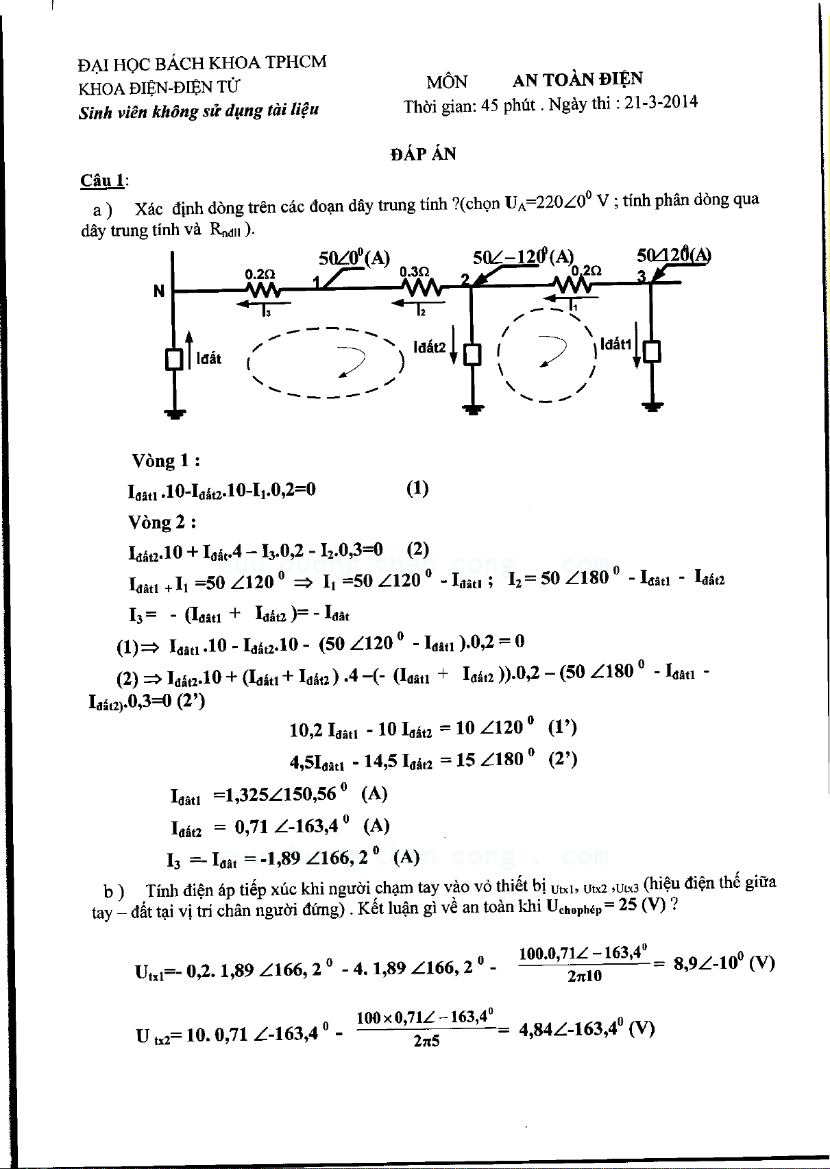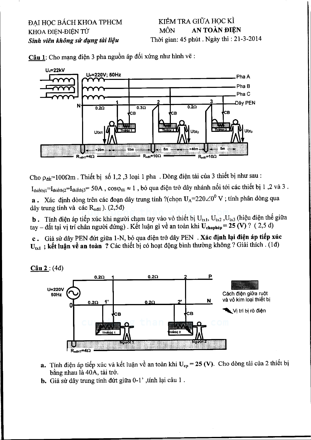 Đề kiểm tra giữa kỳ môn An toàn điện
