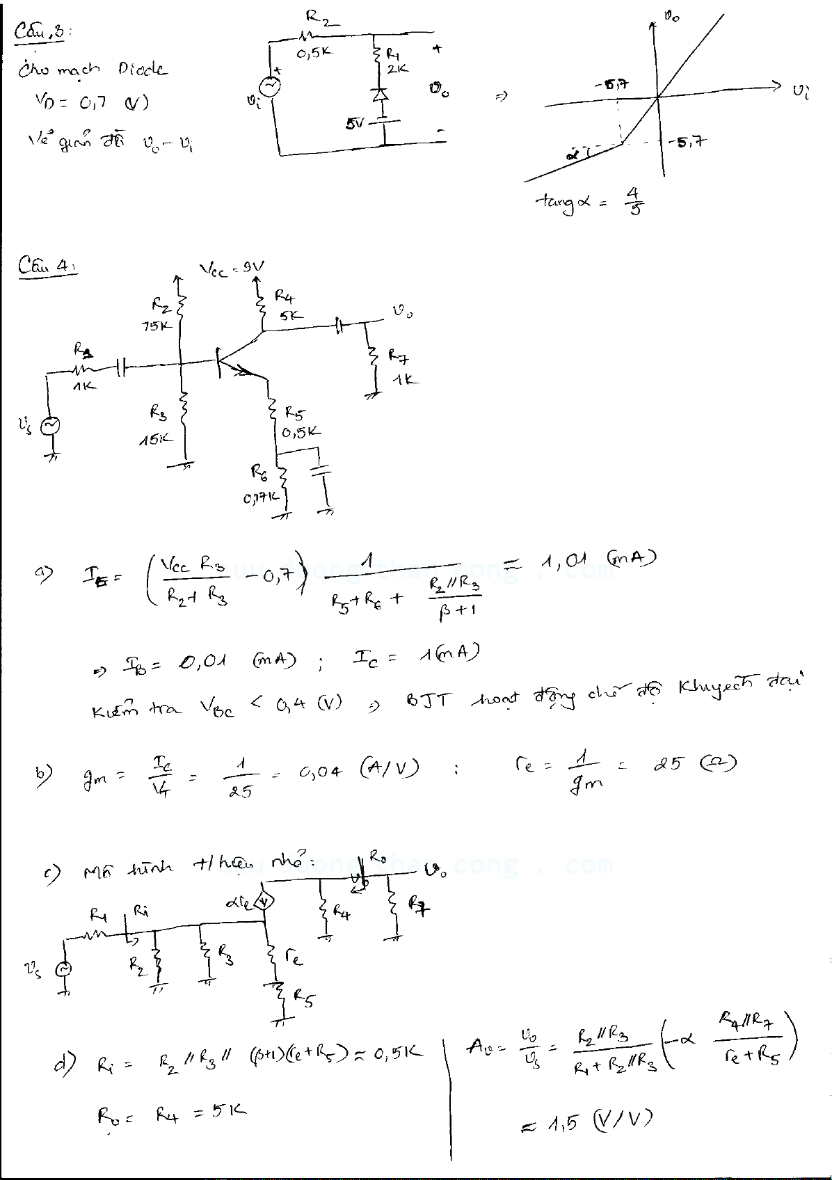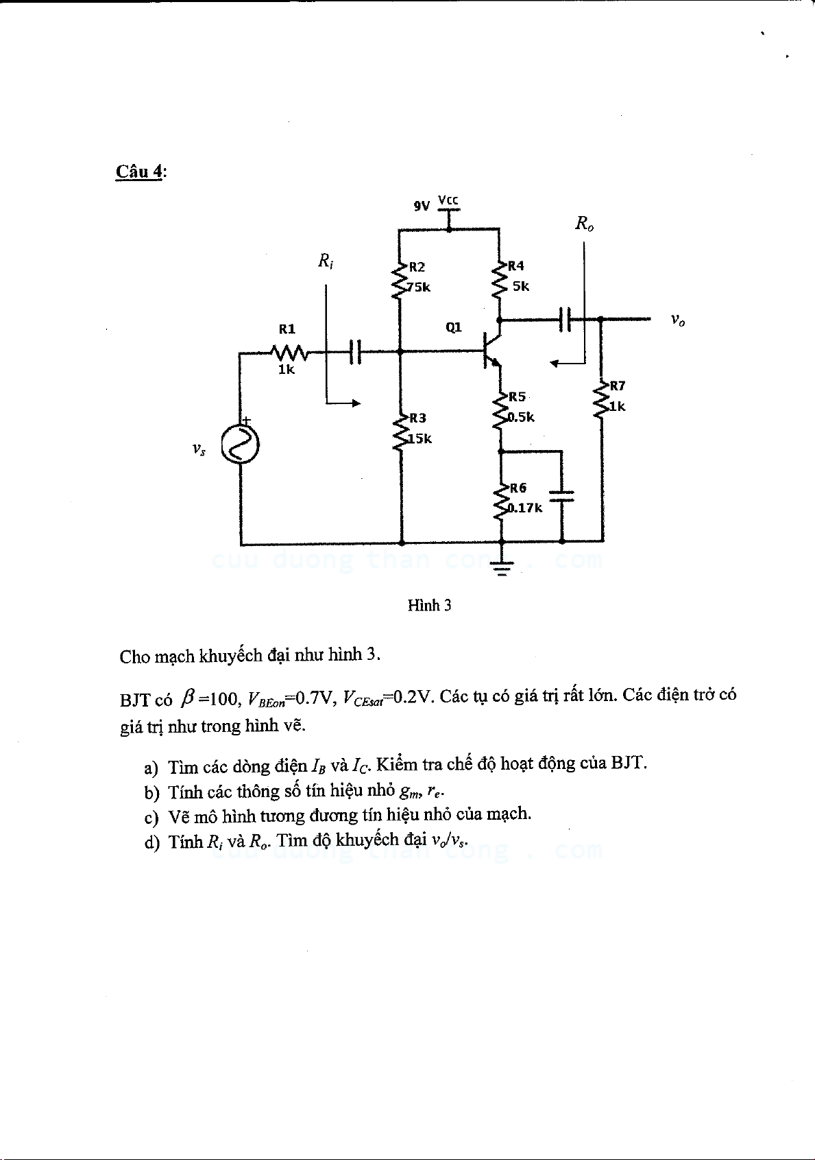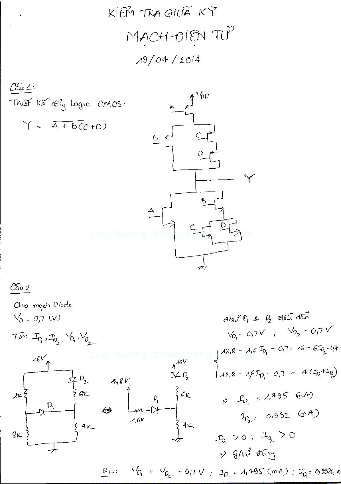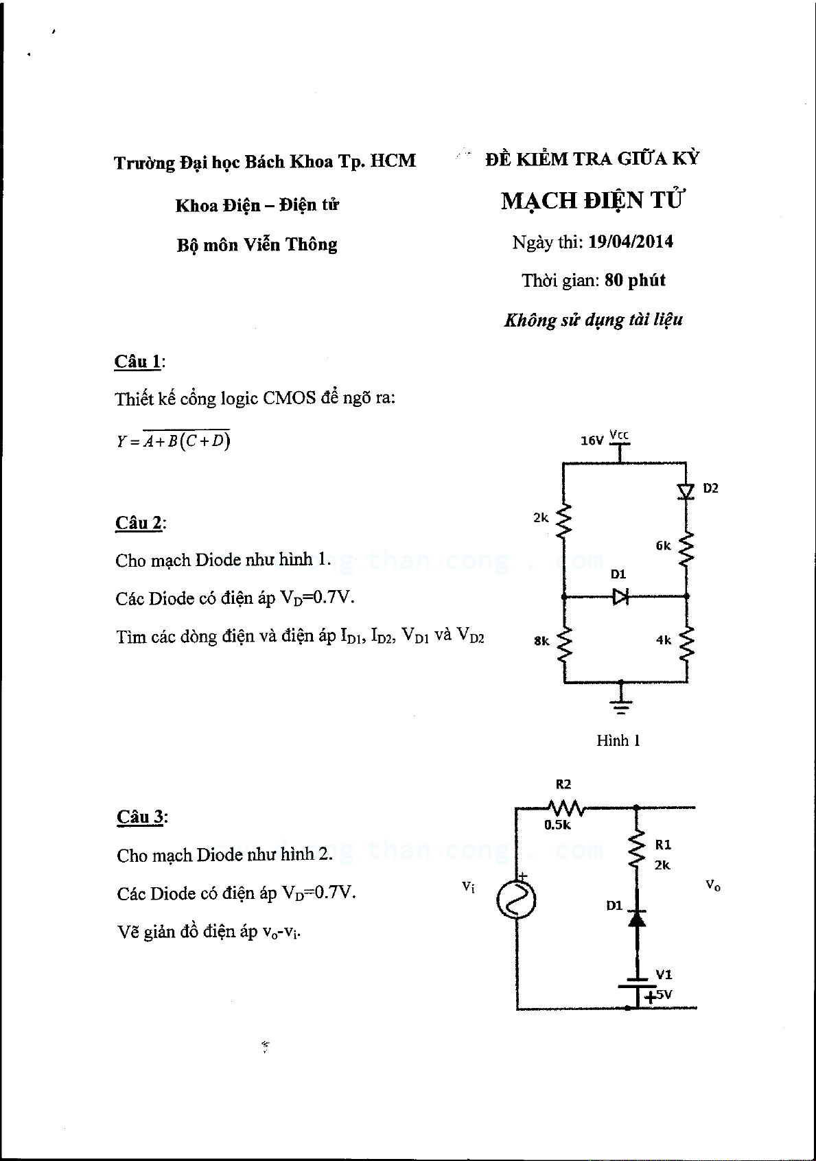 Đề kiểm tra giữa kỳ môn Mạch điện tử