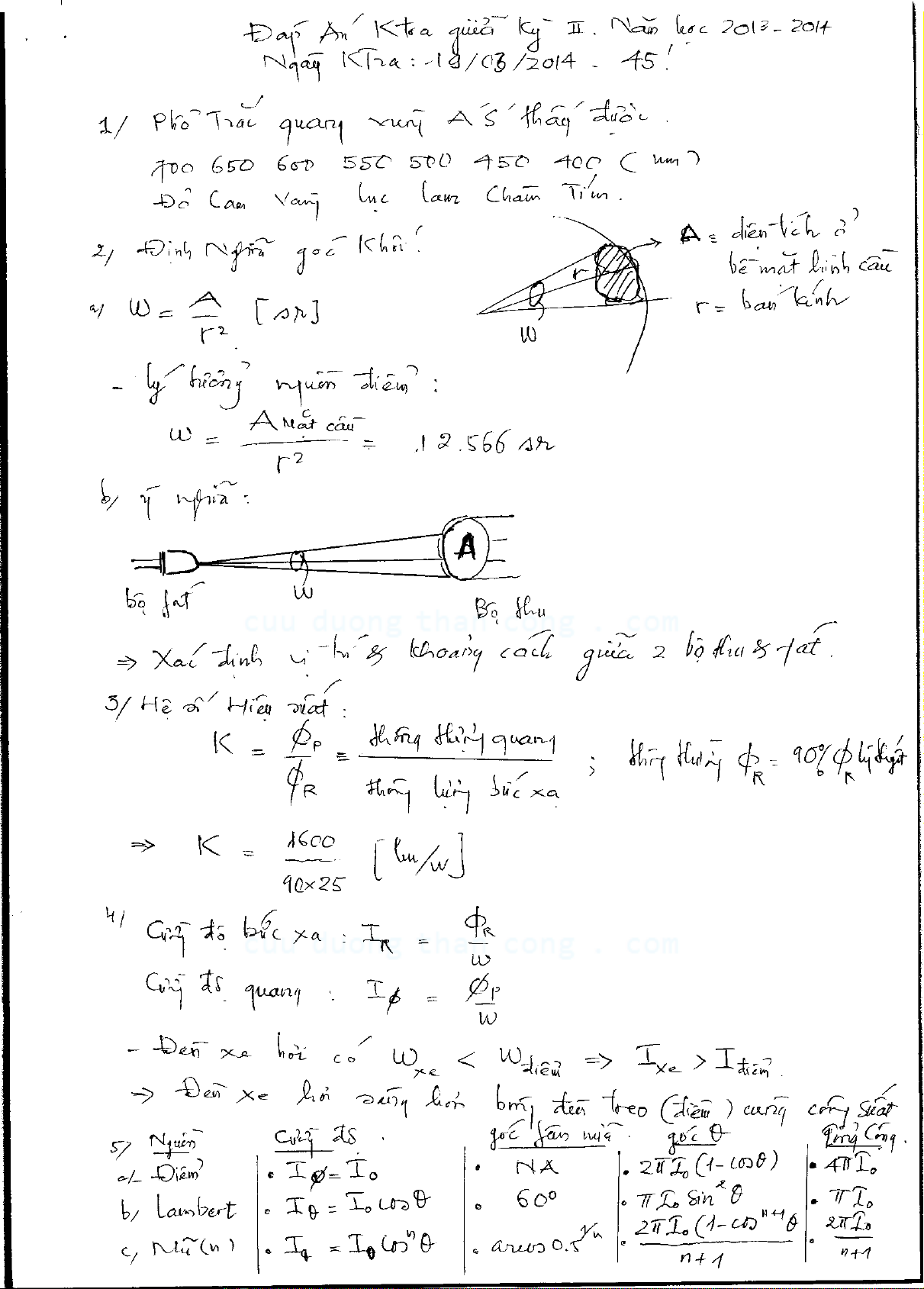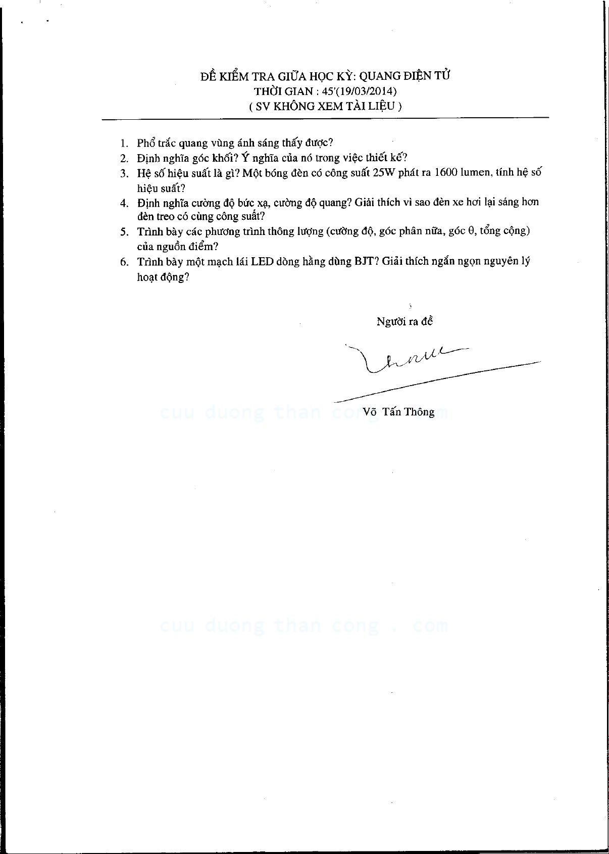 Đề kiểm tra giữa kỳ môn Quang điện tử