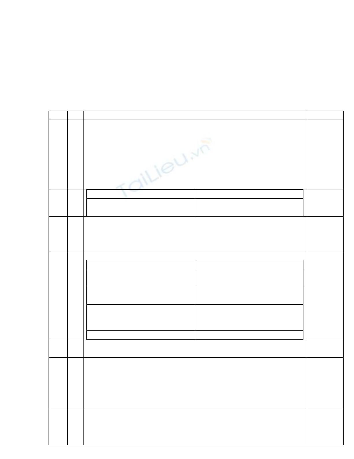 ĐÁP ÁN VÀ THANG ĐIỂM