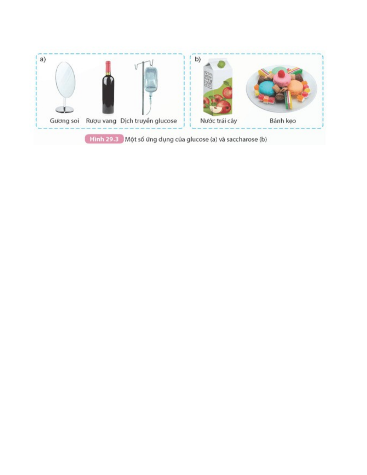 Câu 3: (1,0 điểm) Quan sát Hình 29.3 và trình bày về ứng dụng của glucose, saccharose. Hãy