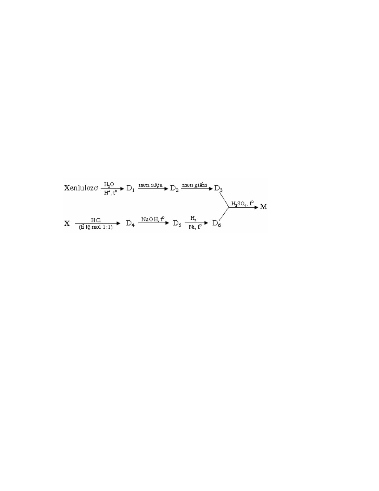 * Từ X, xenlulozơ, các chất vô cơ, xúc tác cần thiết, có thể điều chế chất hữu cơ M theo