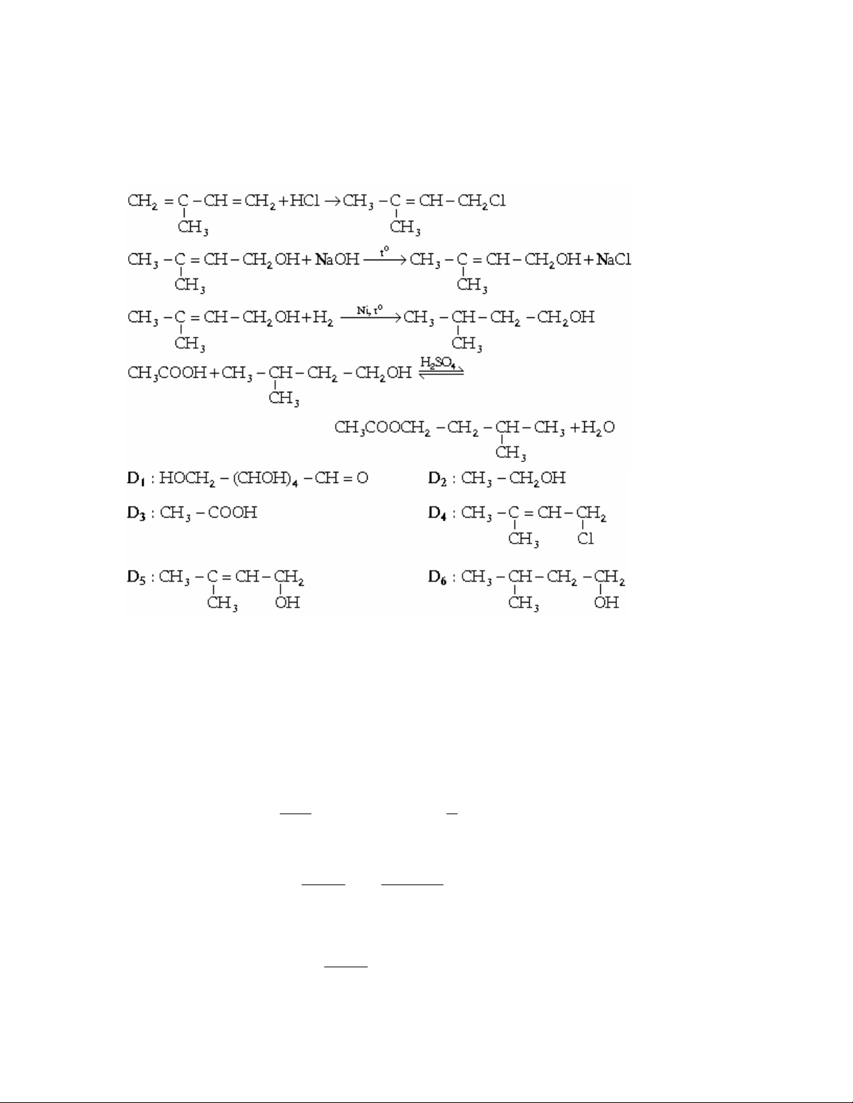 ở vị trí 1,4 của X; D6 là 3-metylbutanol-1. Xác định công thức cấu tạo của các chất hữu