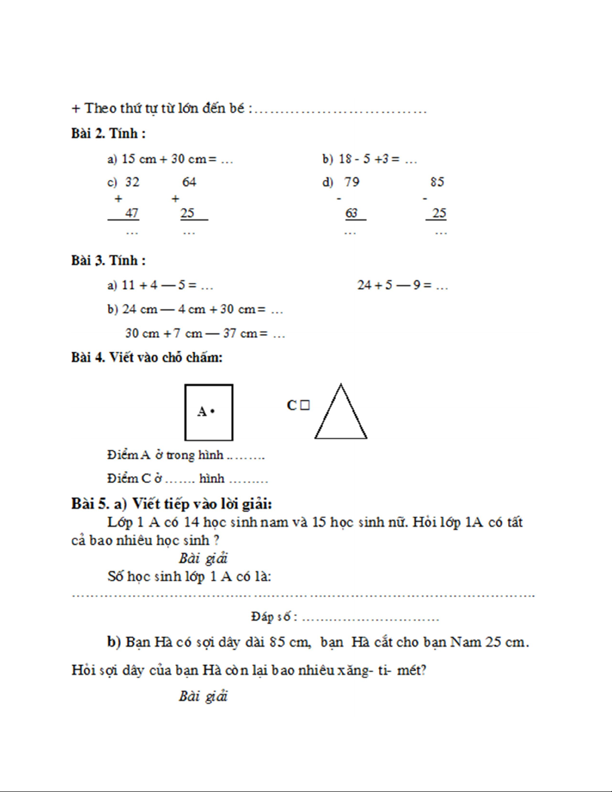 Đề thi cuối kì 2 lớp 1