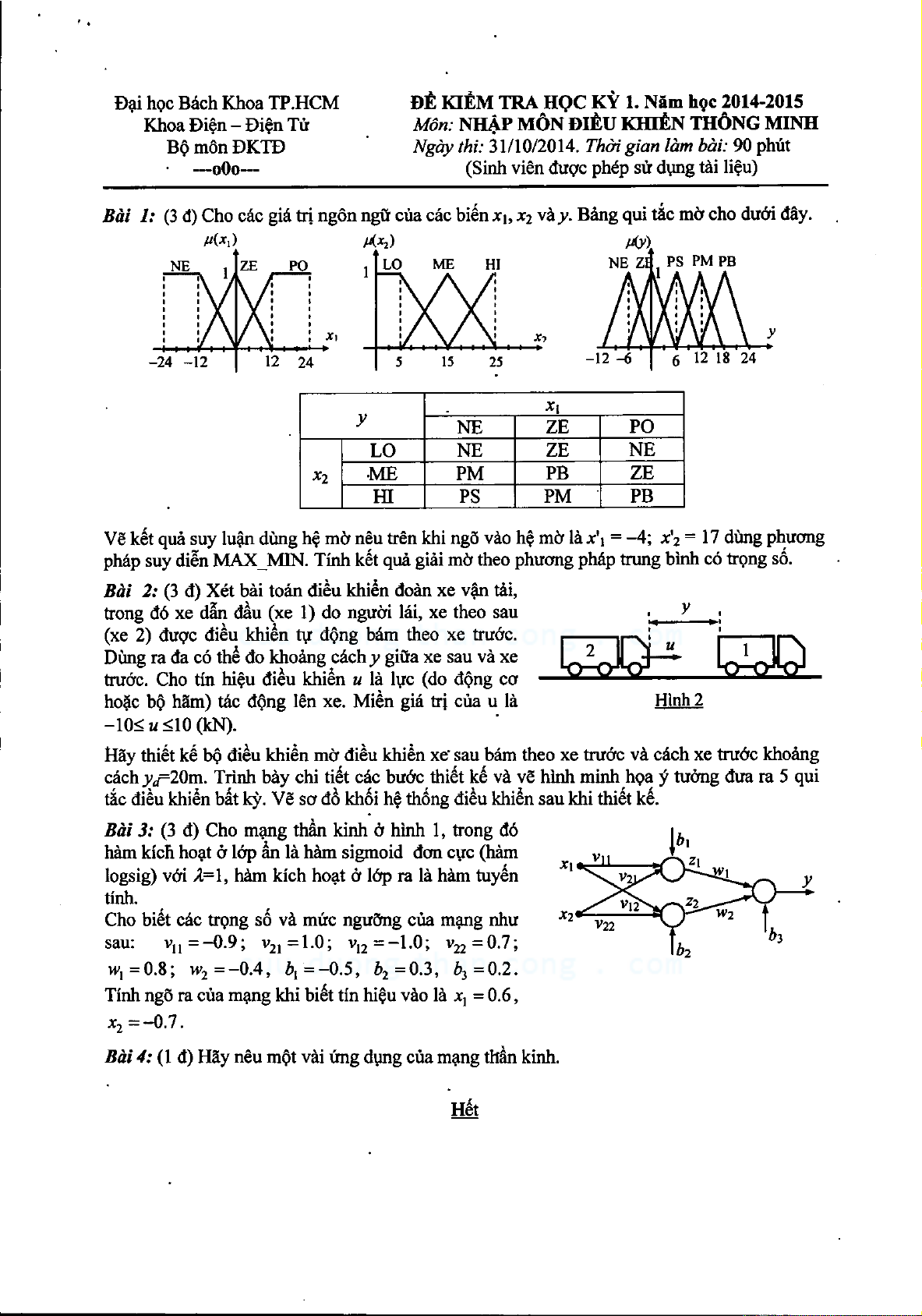 Đề kiểm tra học kỳ I năm học 2014 - 2015 môn Nhập môn điều khiển thông minh