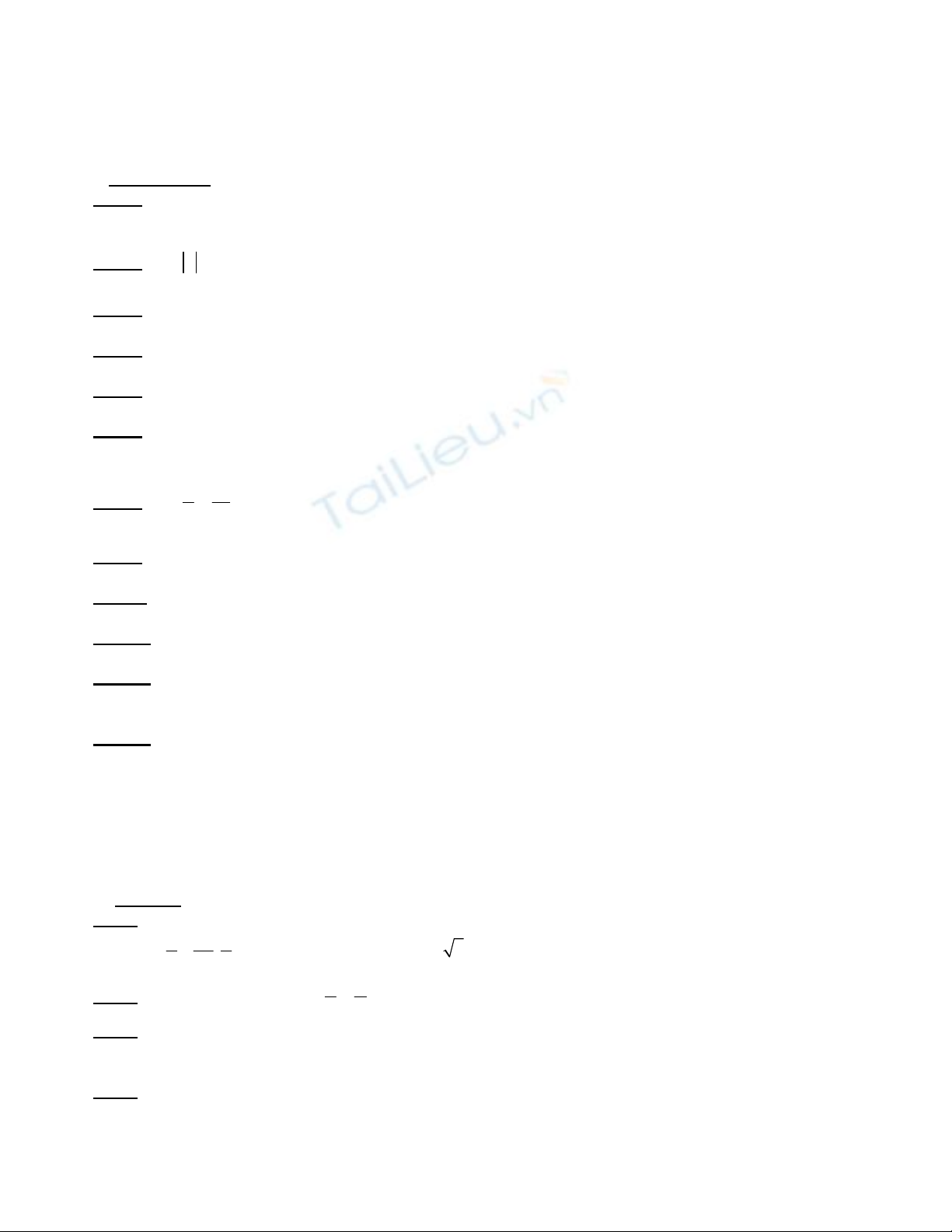 I. Trắc nghiệm: (3 đ) Mỗi câu đúng đạt 0,25 điểm.