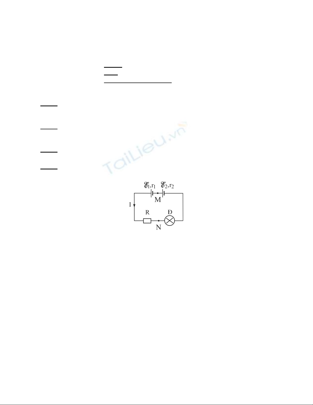- Bộ nguồn điện gồm hai nguồn điện có suất điện động E1 = E2 = 1,5V và điện