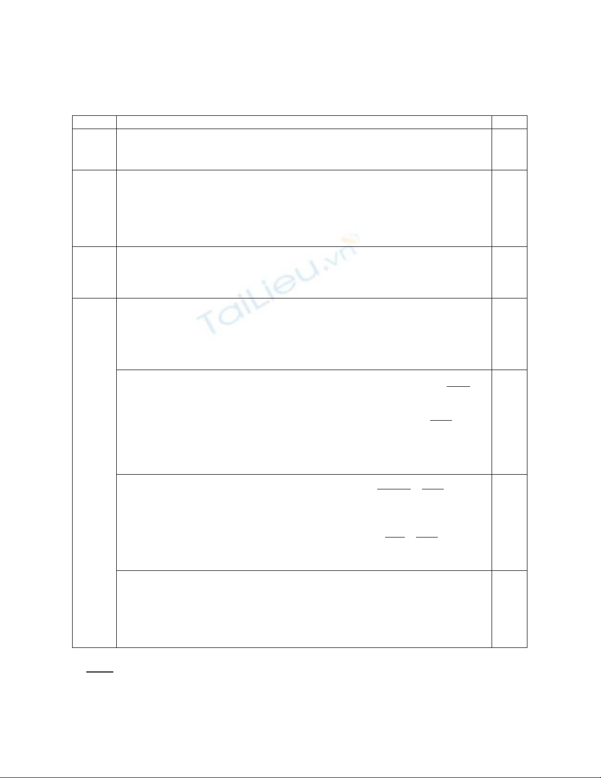 - Học sinh có thể giải theo cách khác mà đúng thì vẫn tính điểm đúng theo từng phần như