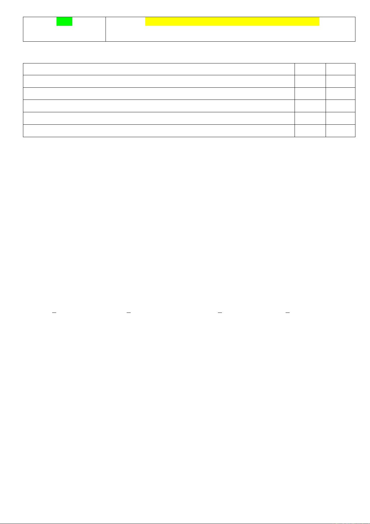 I. Tổng điểm là 1,25 mỗi câu đúng cho 0,25 điểm.