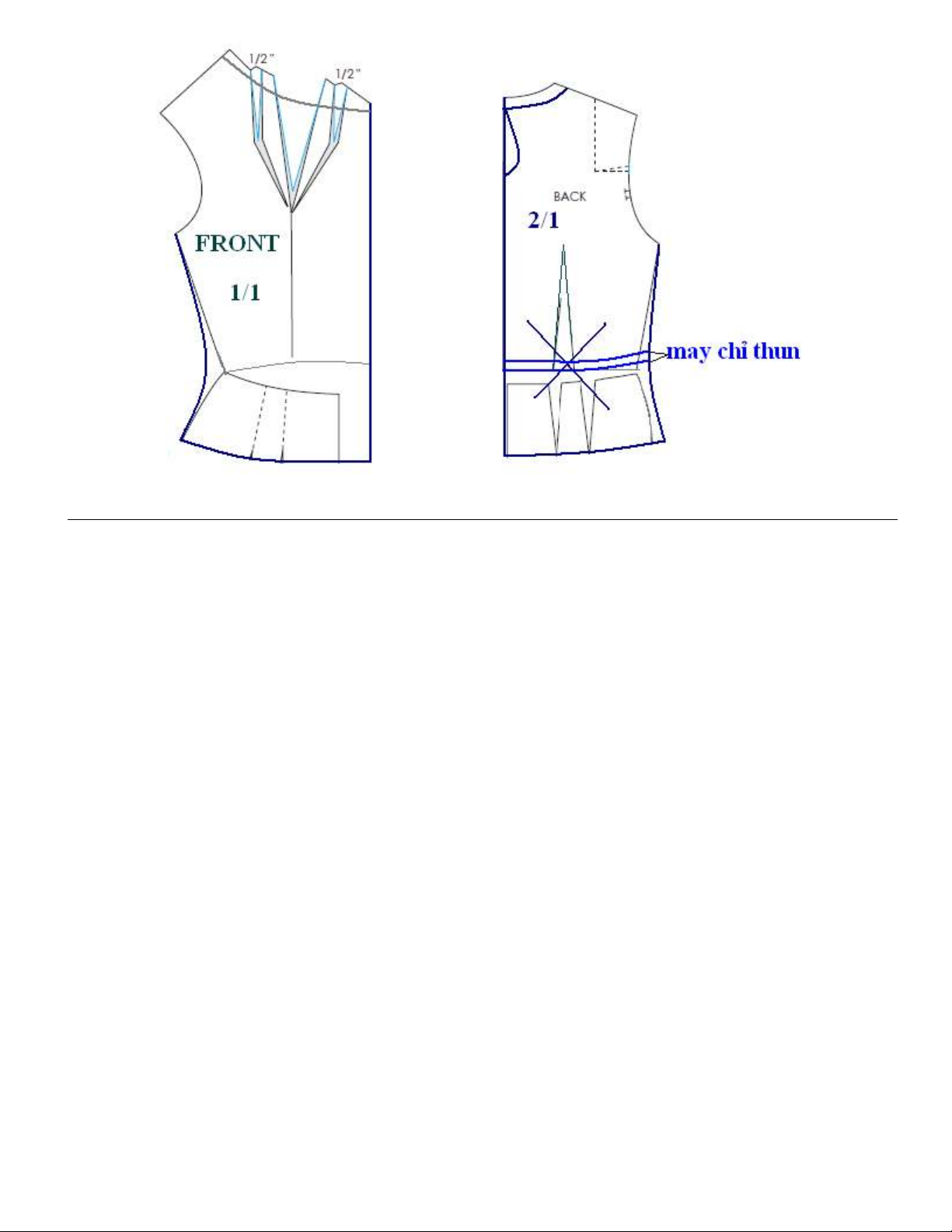 Bàn vẻ thiết kế cấu trúc thân trước, thân sau áo: