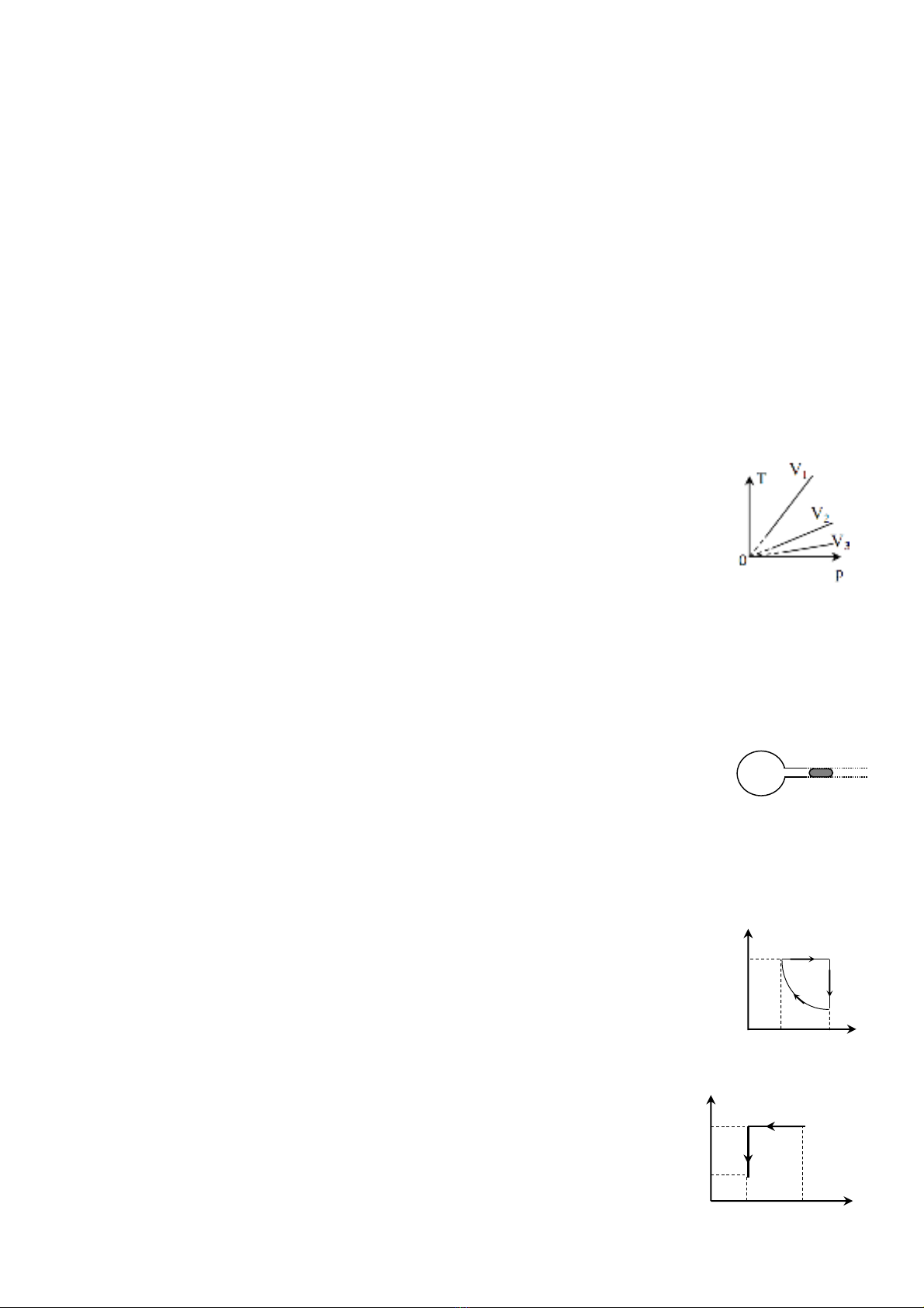 Câu 4. Cùng một khối lượng khí đựng trong 3 bình kín có thể tích khác nhau, đồ thị