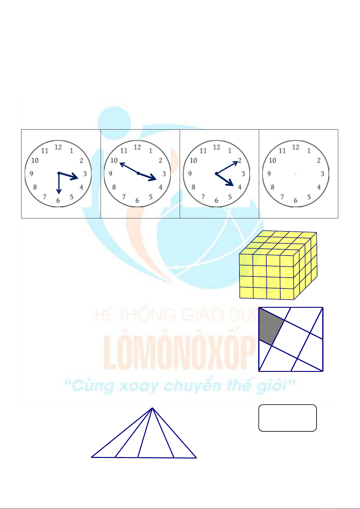Câu 8. (1 điểm) Theo quy luật thì chiếc đồng hồ số 4 chỉ mấy giờ?