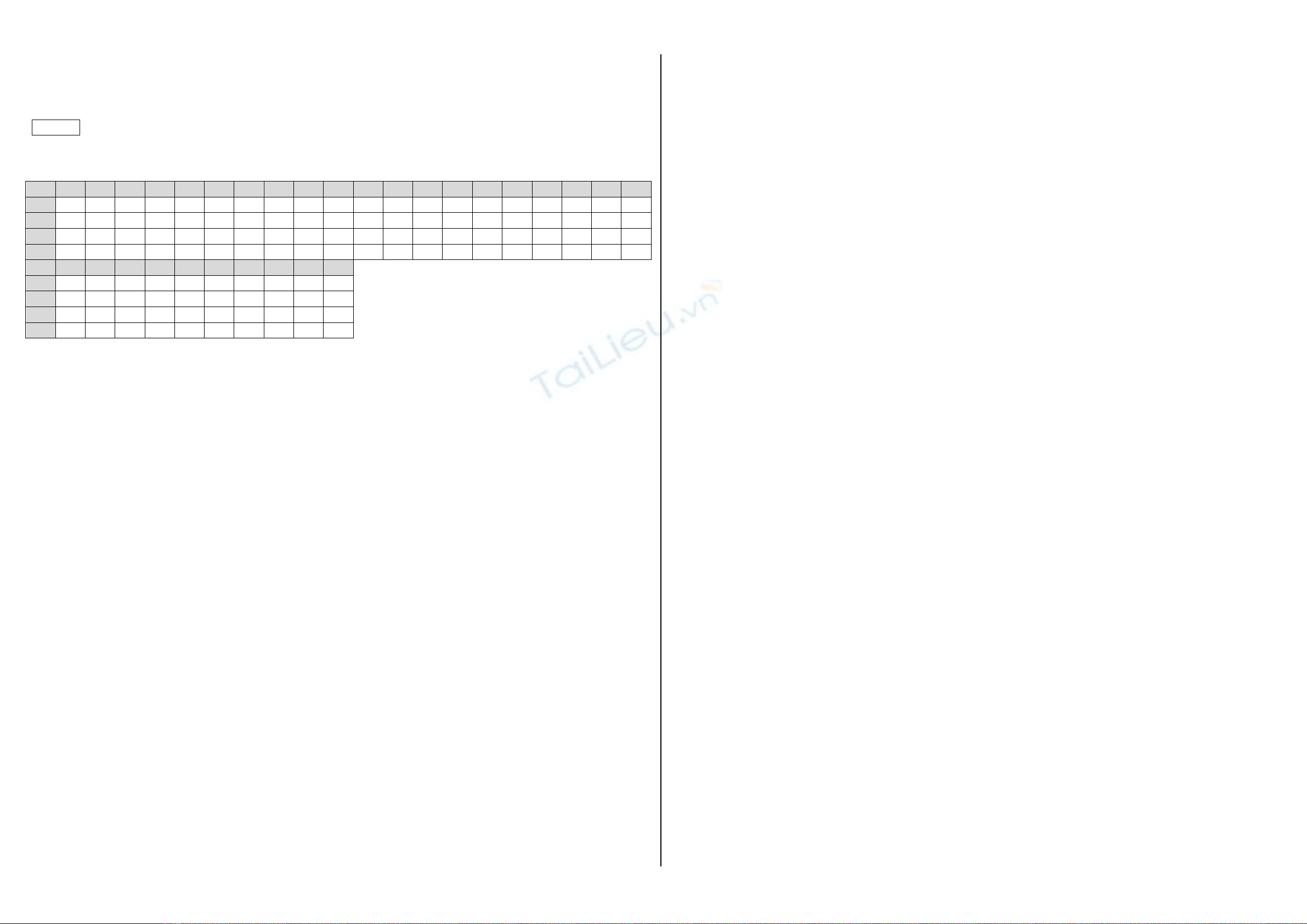 Dùng dữ liệu sau đây trả lời các câu 22 và câu 23