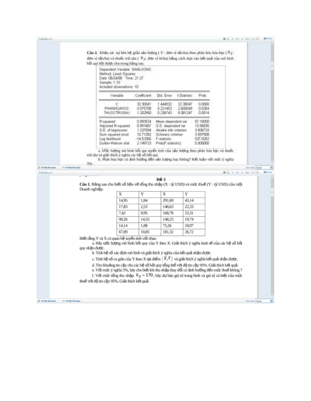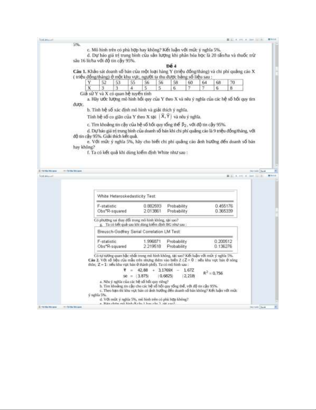 Câu hỏi phân tích kinh tế lượng