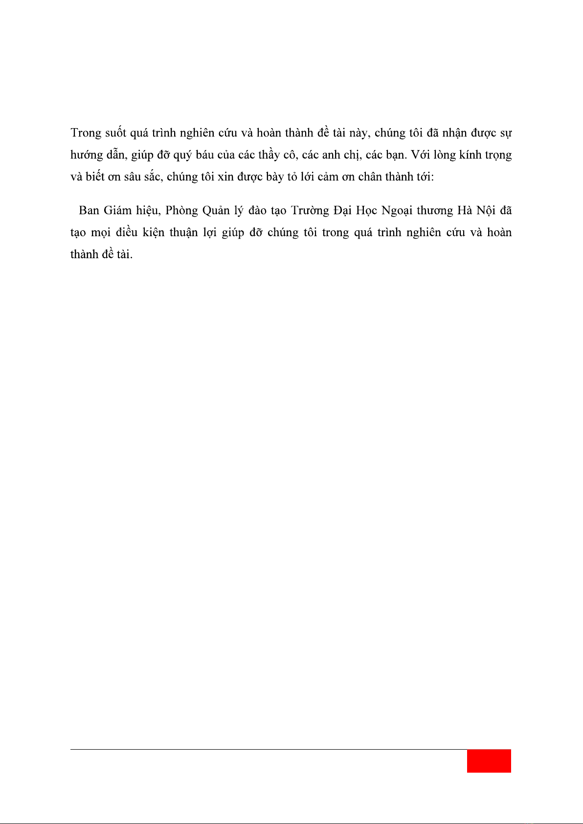Đại học Ngoại thương Hà Nội đã nhiệt tình ủng hộ và giúp đỡ chúng tôi.