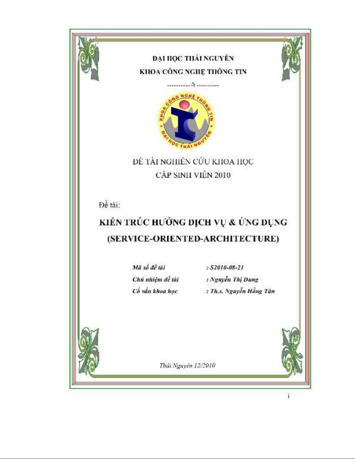 Đề tài NCKH cấp sinh viên 2010: Kiến trúc hướng dịch vụ và ứng dụng (Service-Oriented-Architecture)