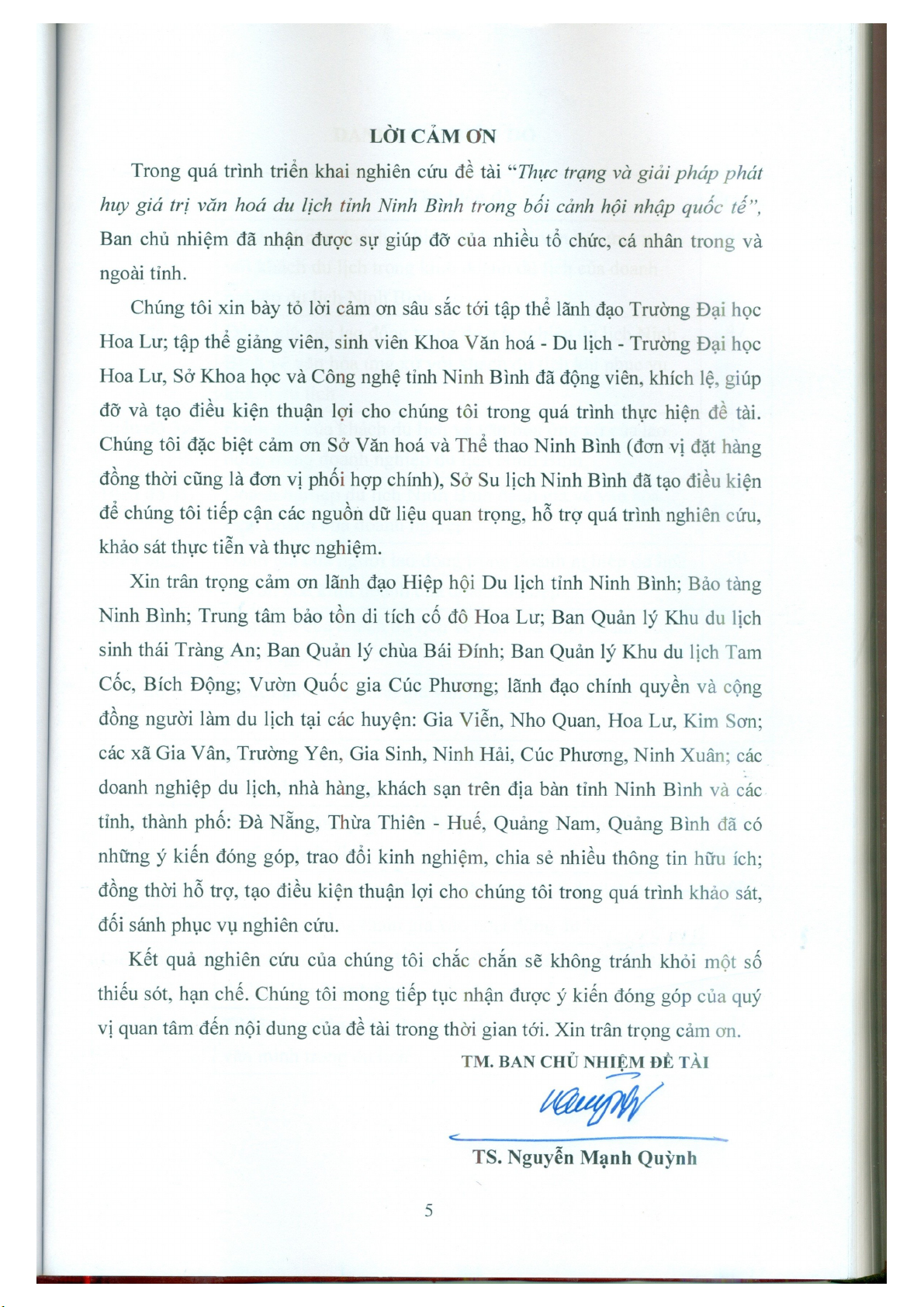 3.2.6. Nhóm giải pháp xây dựng thương hiu điểm đến Ninh Bình gắn với giá trị văn hóa du lịch ... 118