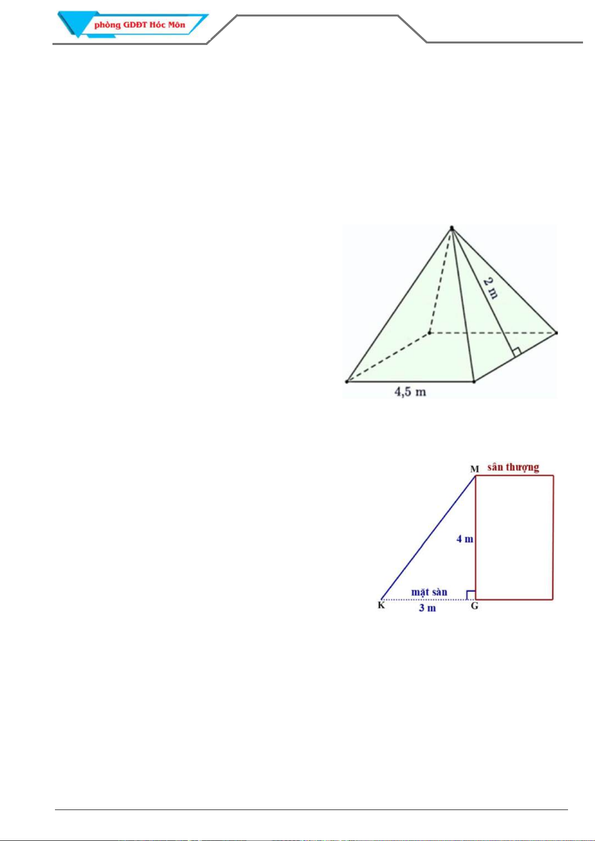 hình chóp tứ giác đều, chiều cao 100 cm. Tính