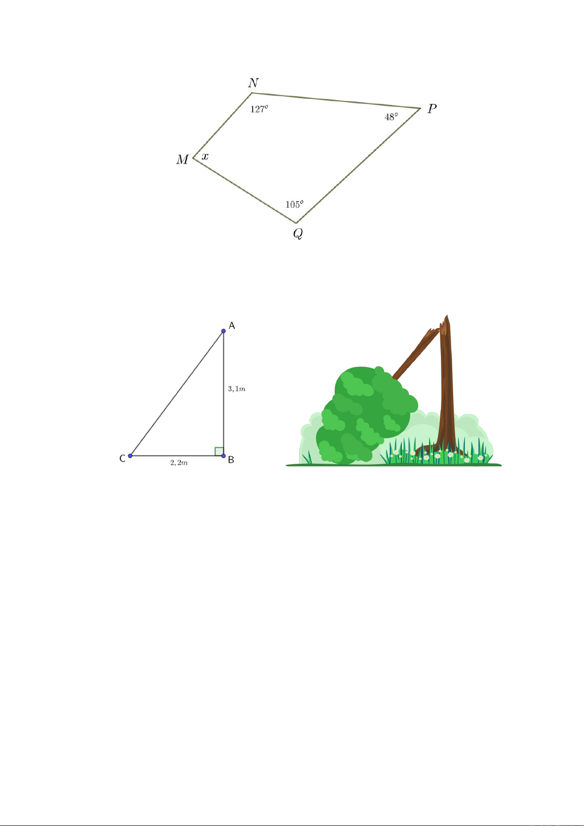 Câu 6: (0,5 điểm) Trong đợt bão, một cái cây đã bị gãy ngang thân (xem hình vẽ bên dưới),
