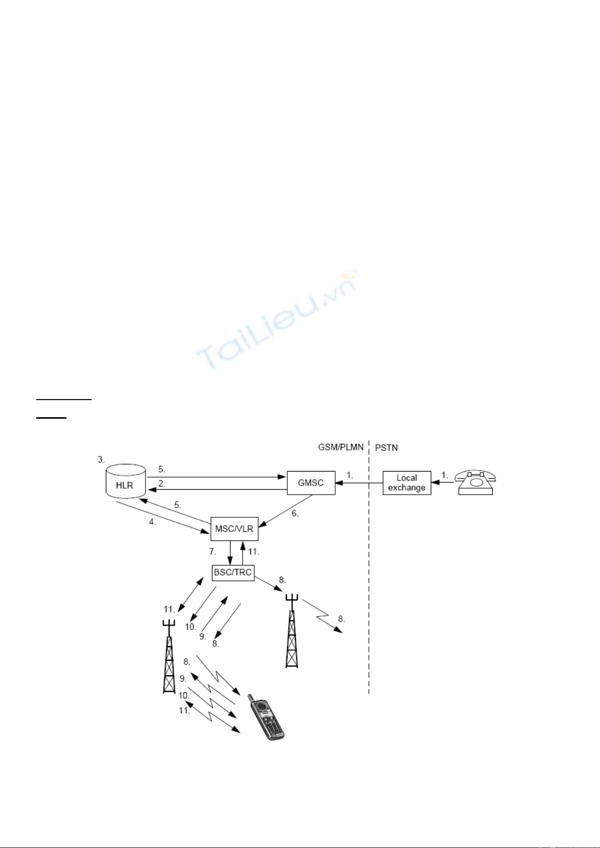 Câu 1: Hãy giải thích chu trình cuộc gọi từ máy cố định đến máy di động trong mạng GSM như thể hiện hình 1.