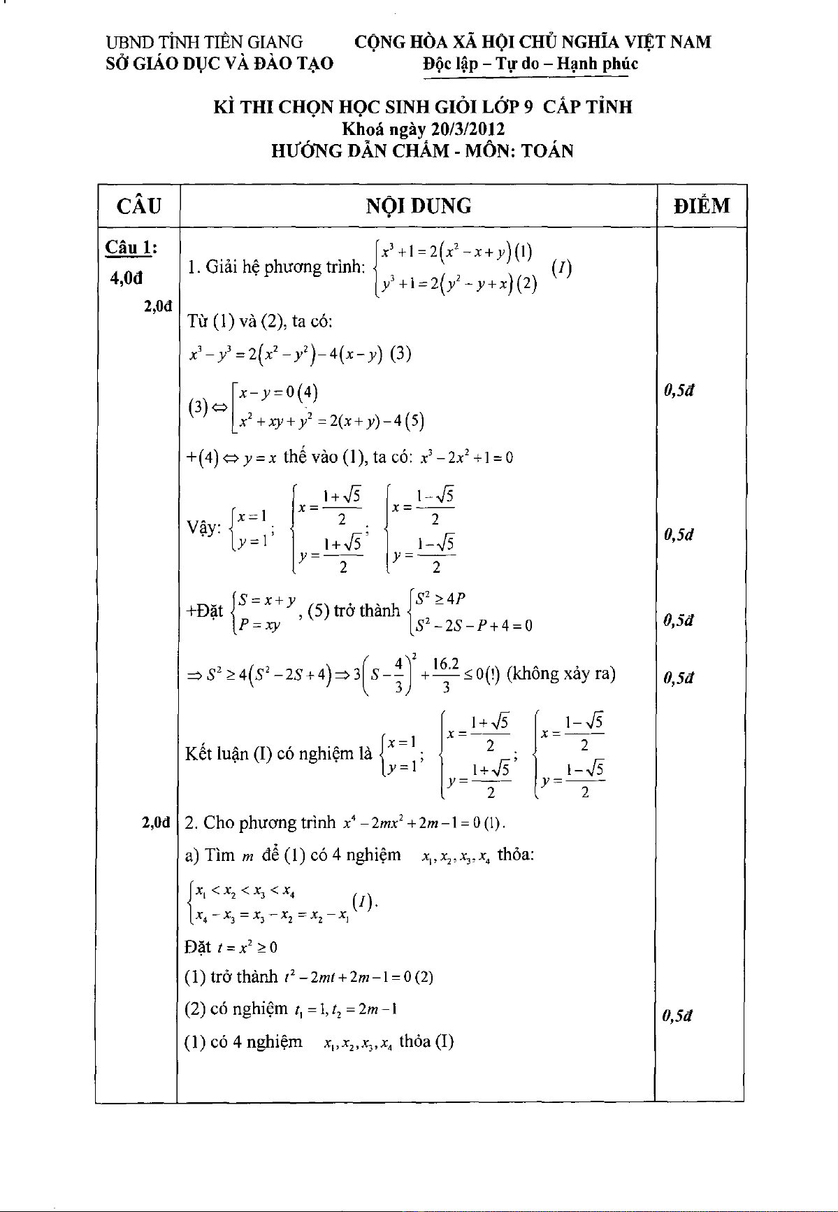 Đề thi chọn HSG lớp 9 môn Toán tỉnh Tiền Giang (kèm đáp án)