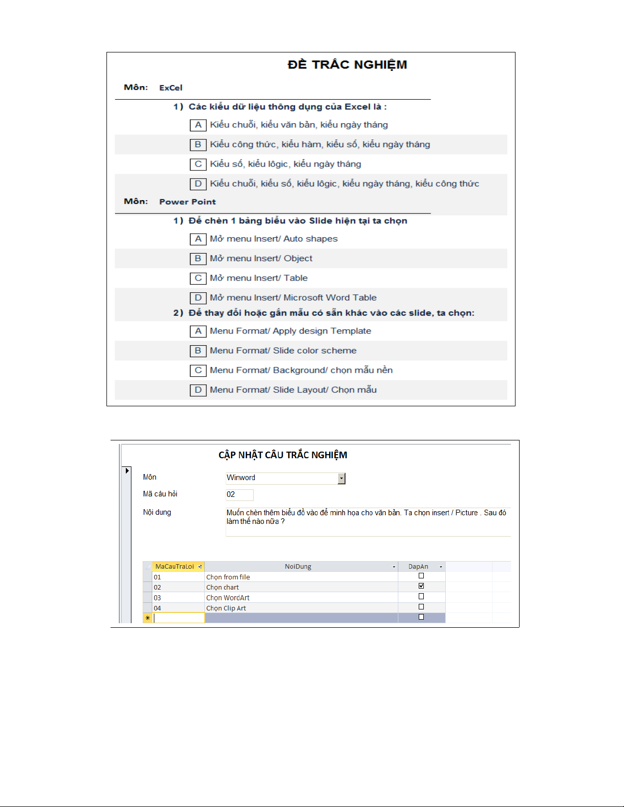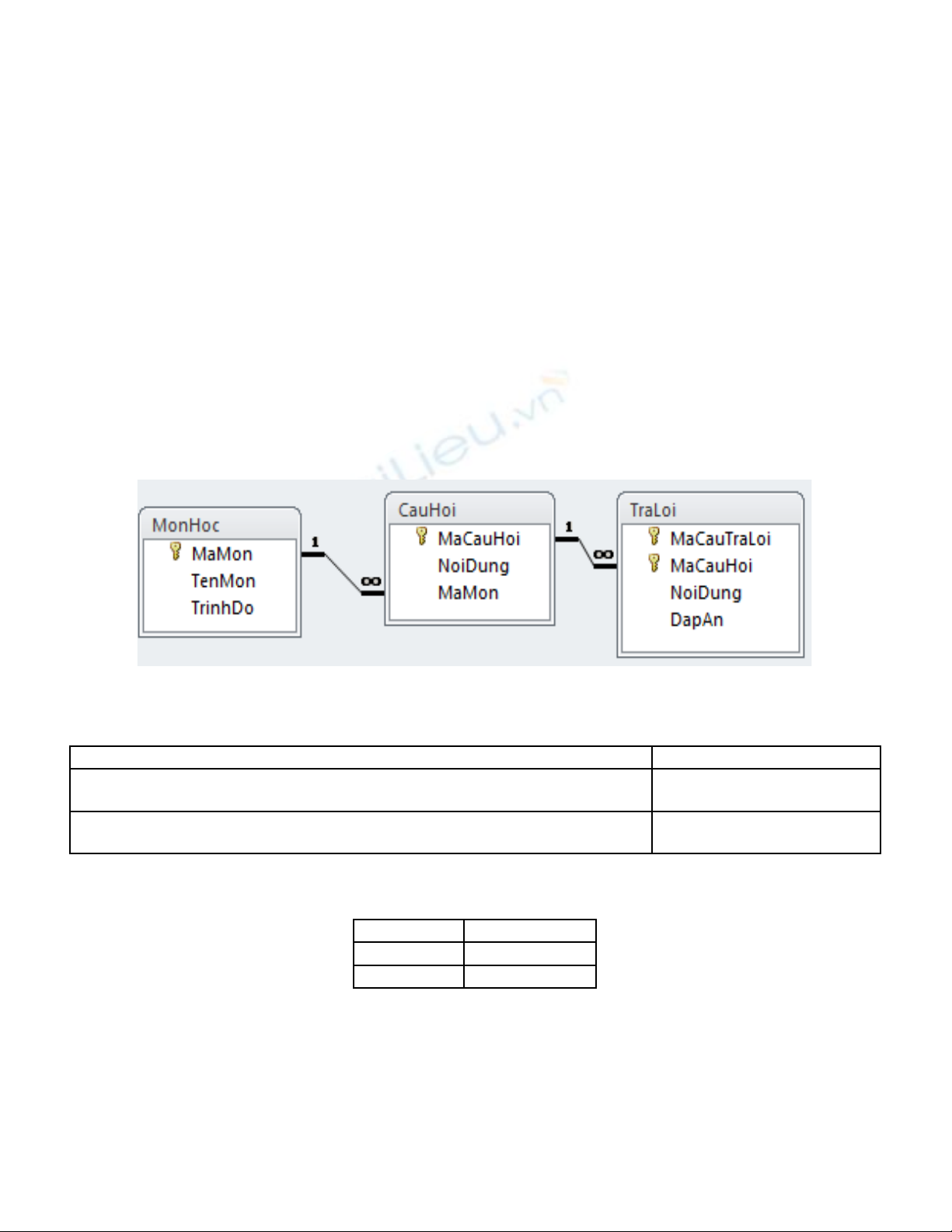 Mô t : Các câu h i đ c l u trong b ng CauHoi. Các câu tr l i đ c l u trong b ngả ỏ ượ ư ả ả ờ ượ ư ả