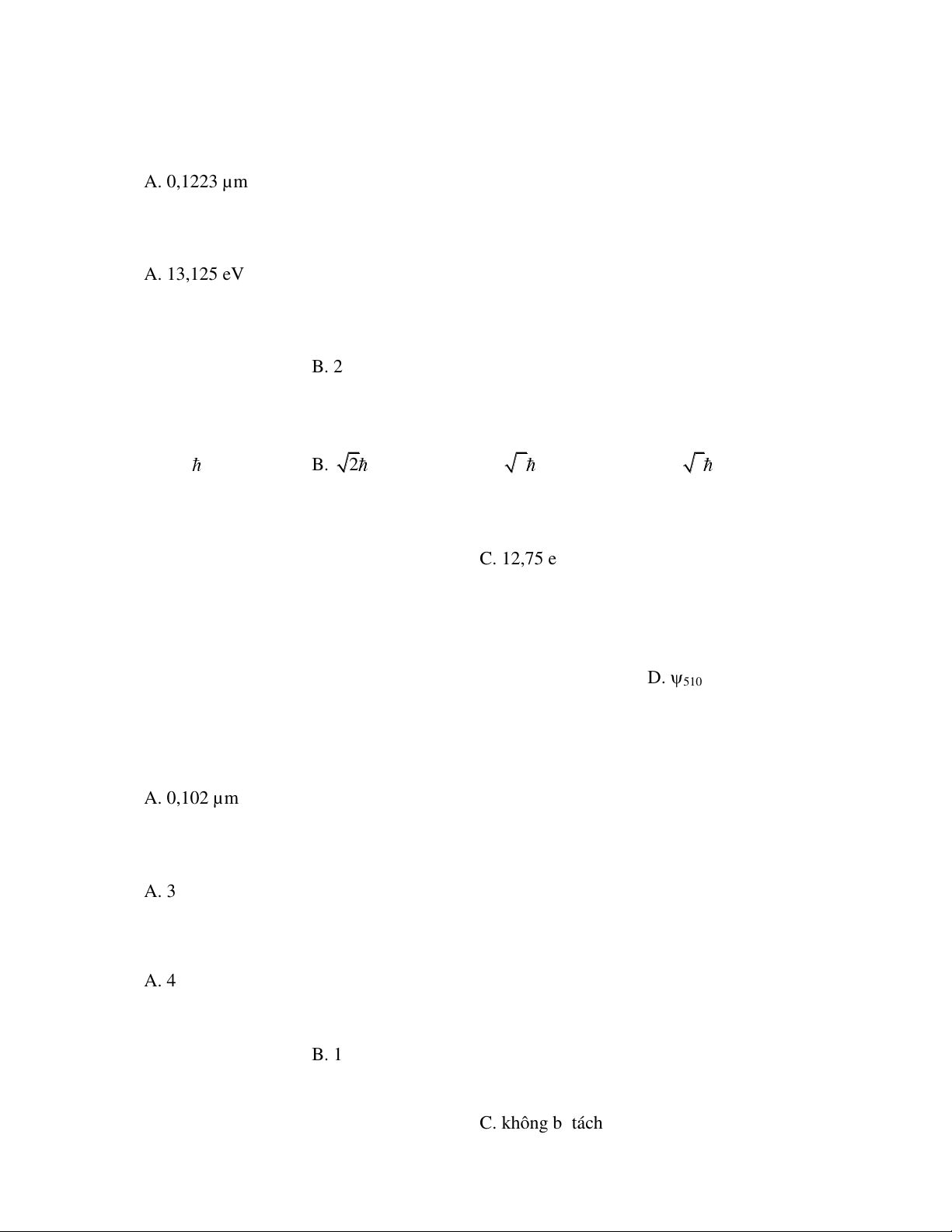 Câu 6: Trong nguyên tử H, electron đang ở trạng thái 2s, hấp thụ một năng lượng là 2,856eV thì có thể