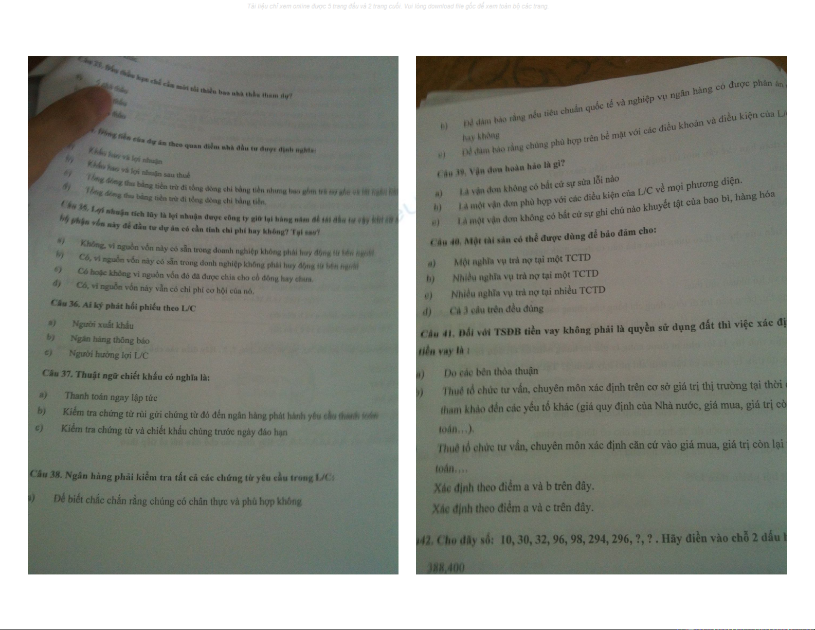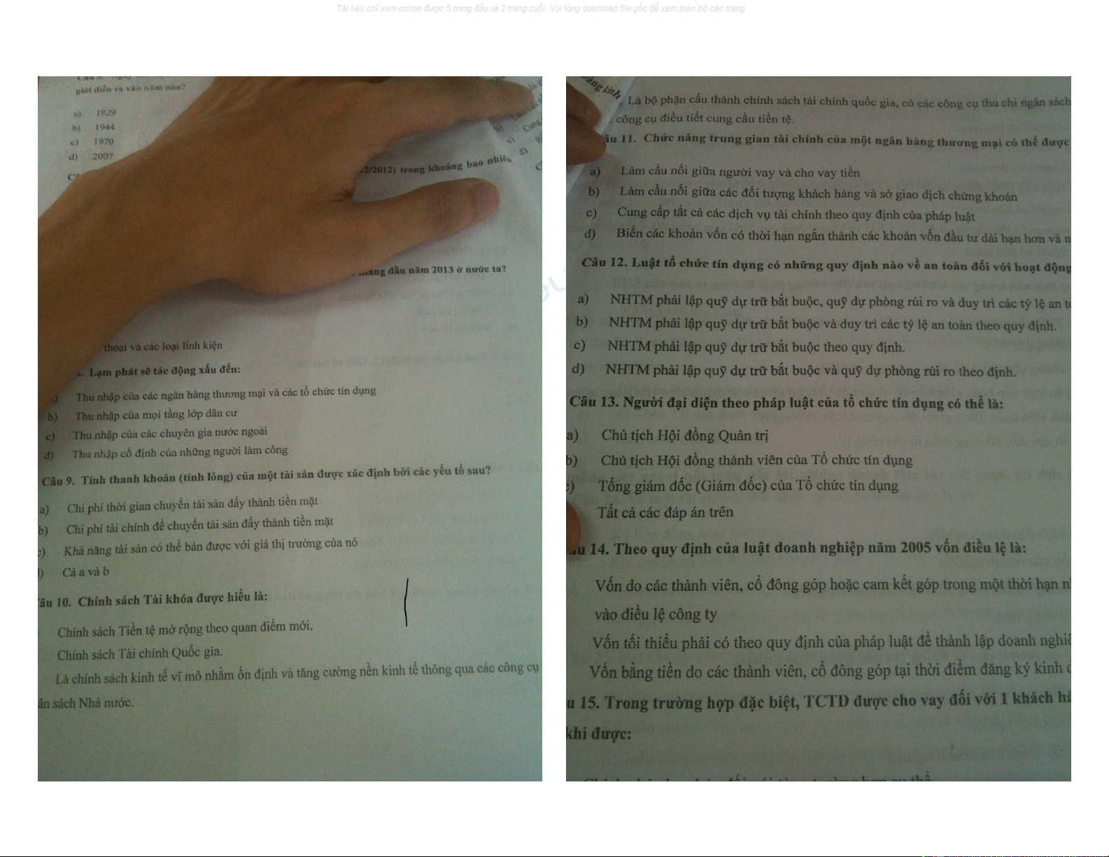 Đề thi trắc nghiệm môn Tài chính Tiền tệ(Định chế tài chính) đề 4