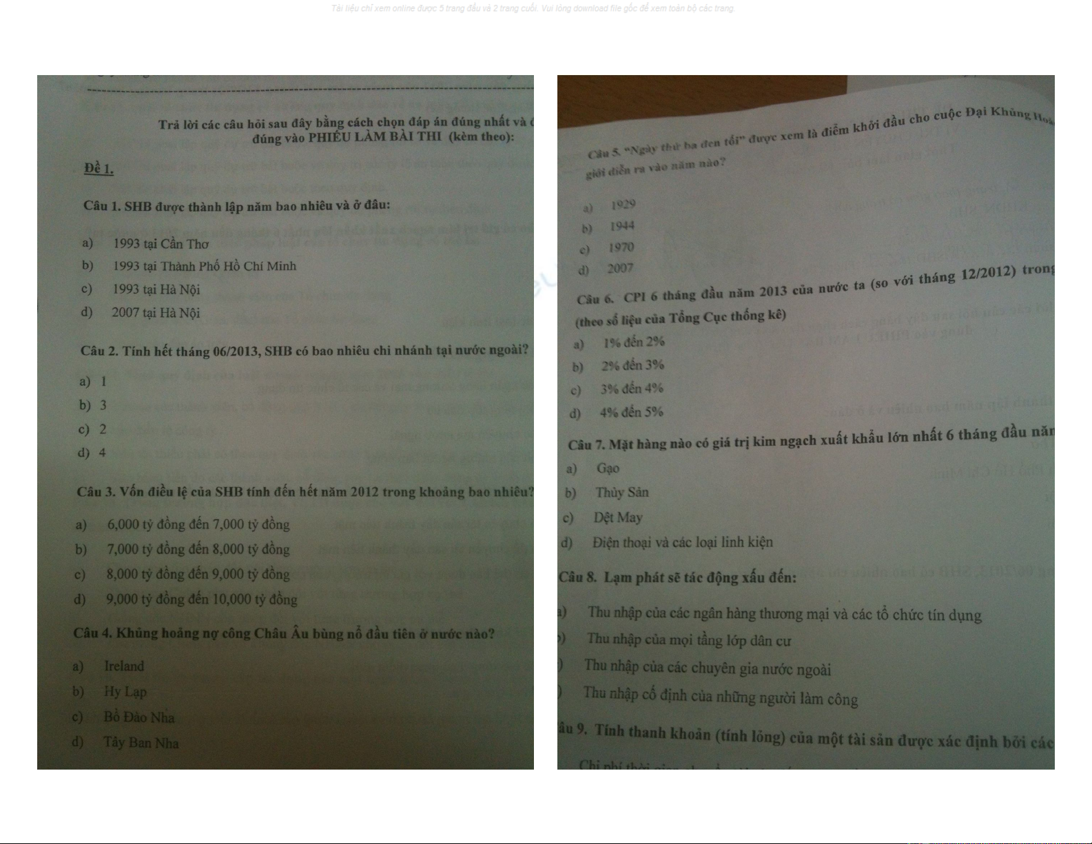 Đề thi Chuyên viên QHKH của Ngân hàng SHB